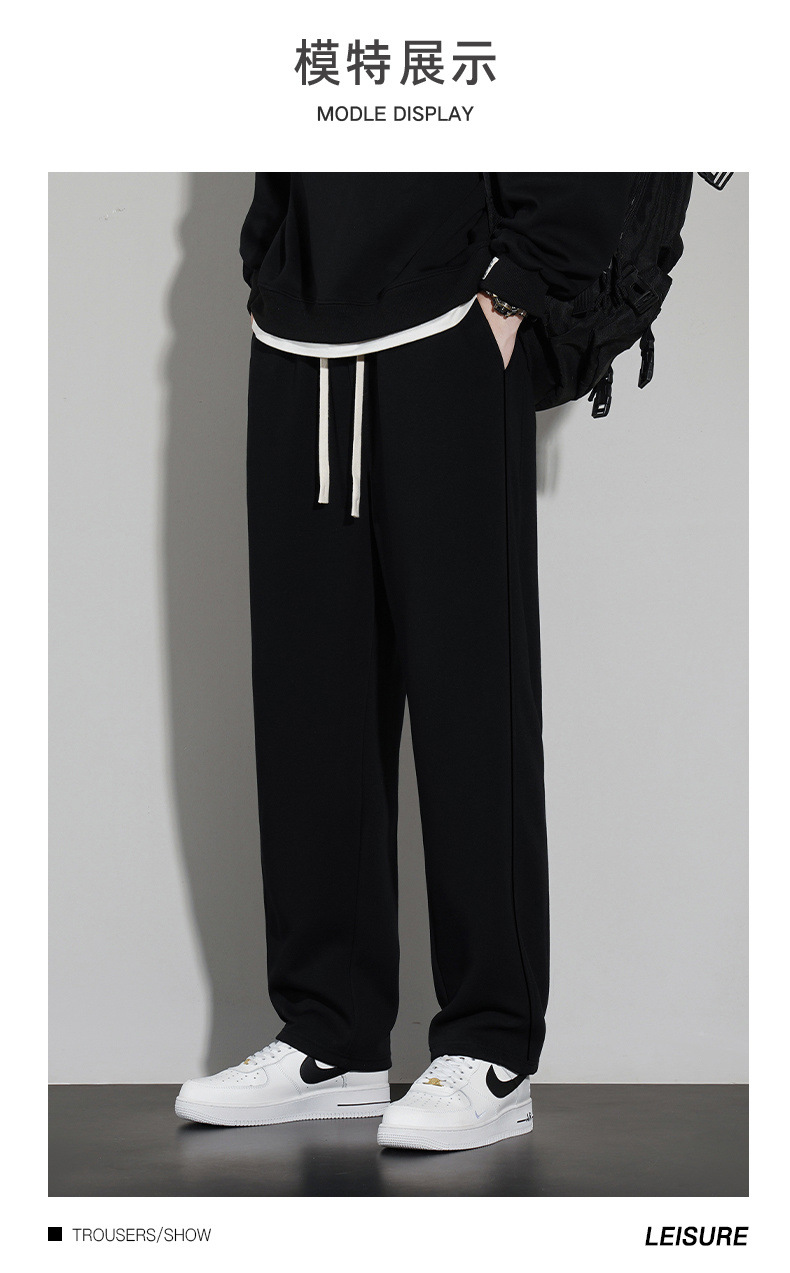가을 겨울용 남성 캐주얼 팬츠, 스포츠 스트레이트 팬츠, 홍콩 스타일 루즈핏 와이드 팬츠, 남성용 트렌디 봄 가을 팬츠