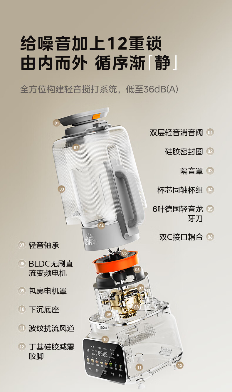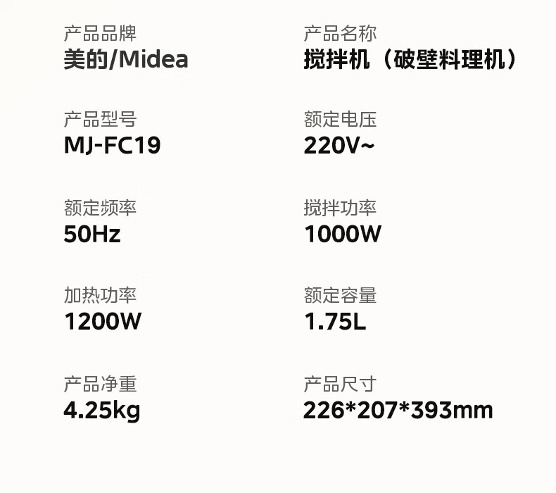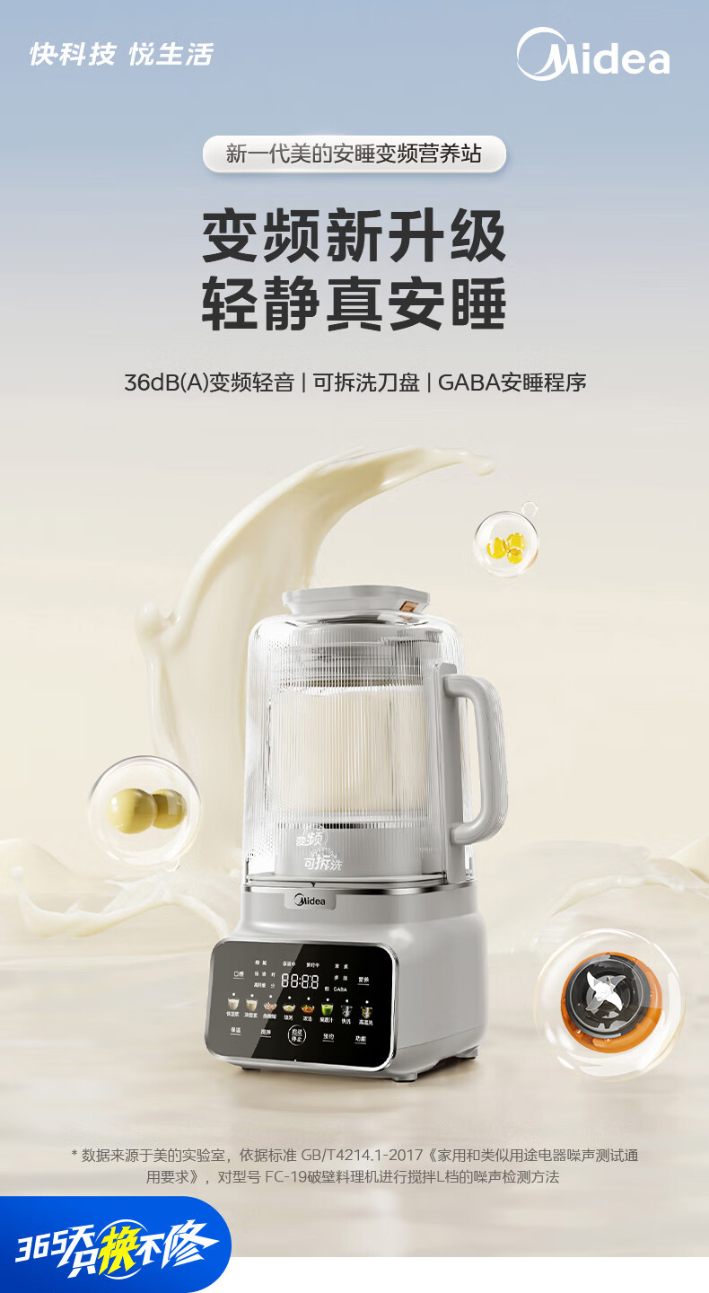 Midea 벽 깨는 기계 MJ-FC19 주파수 변환 홈 완전 자동 콩 우유 기계 저음 보조 식품 가공 기계 분리 가능한 새로운스토어 가기