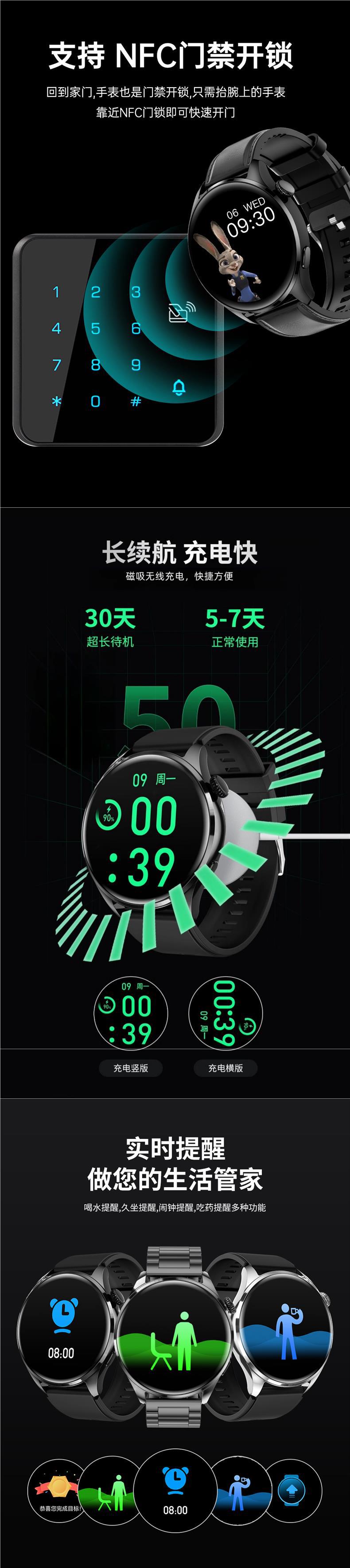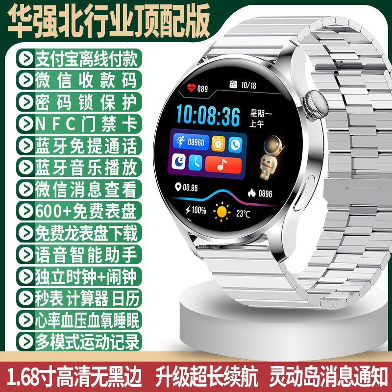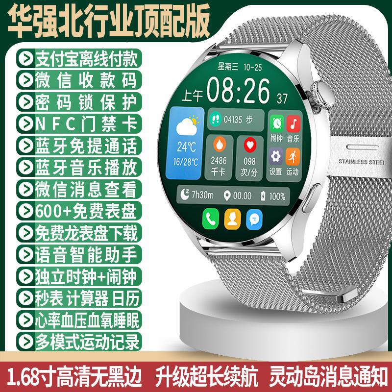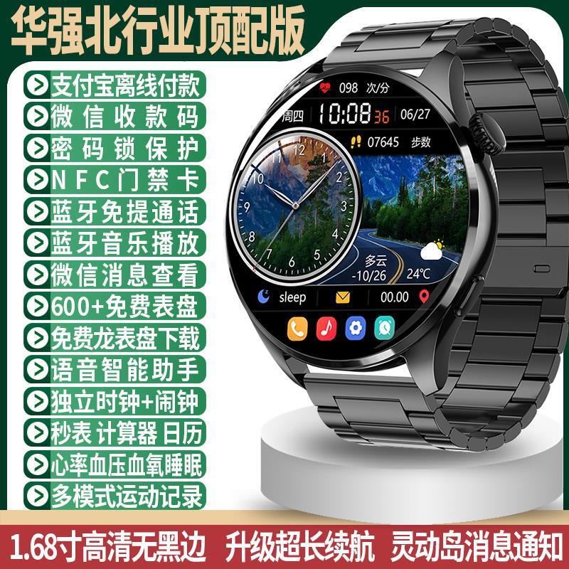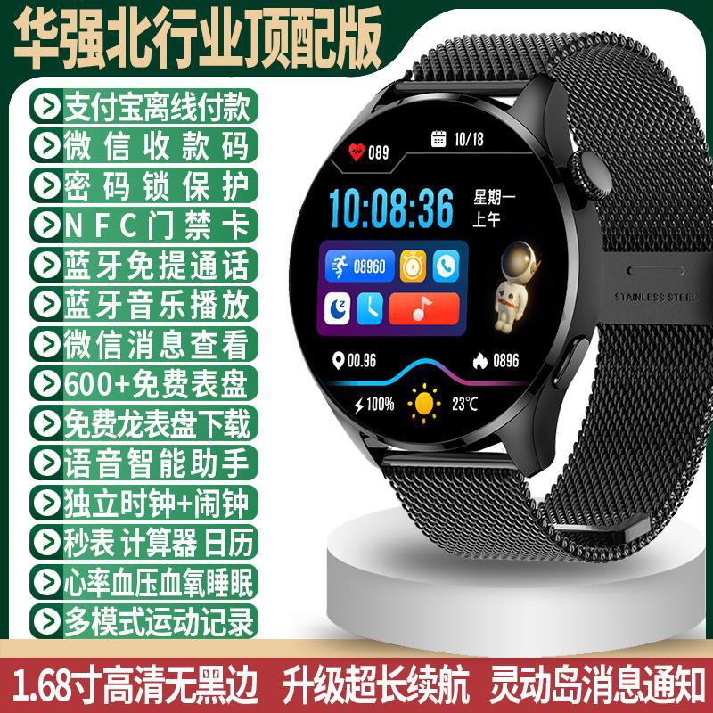 • 검정색 3바이트 스틸 벨트(고화질 통화 + 초장기 대기 시간 + WeChat 메시지 보기 + Alipay 결제 WeChat 결제 + NFC 액세스 제어 + 고화질 대형 화면 + 음악 재생)