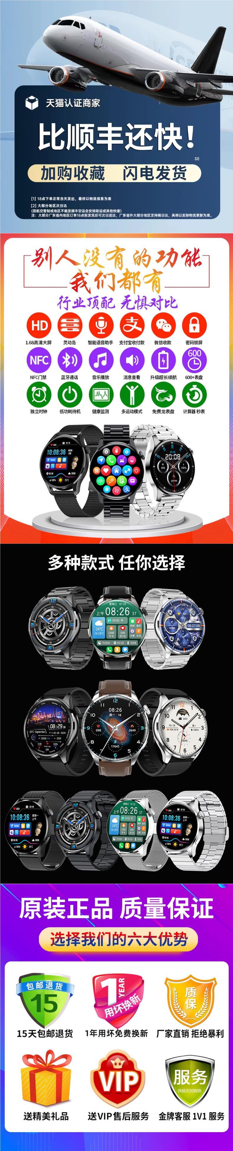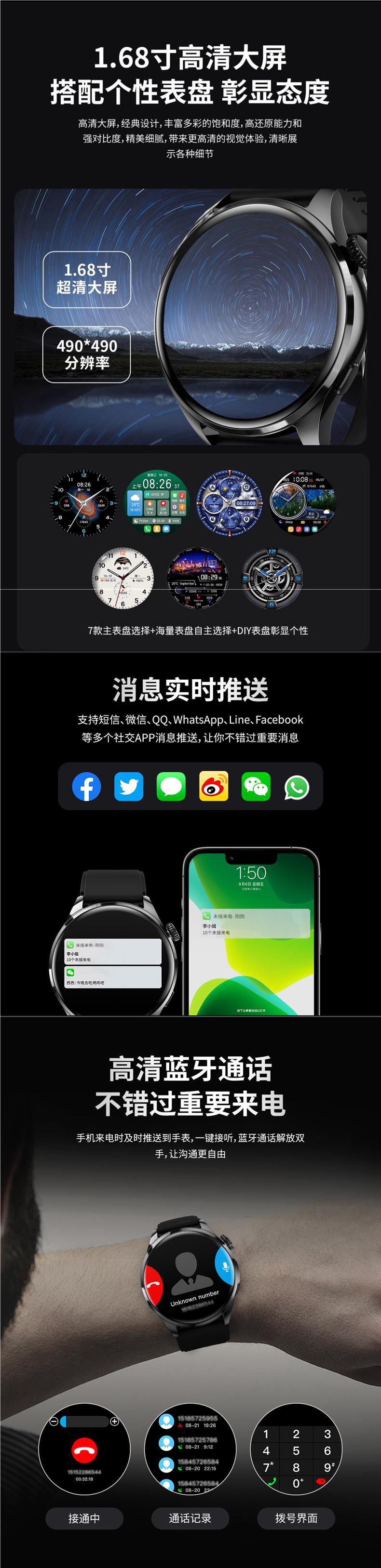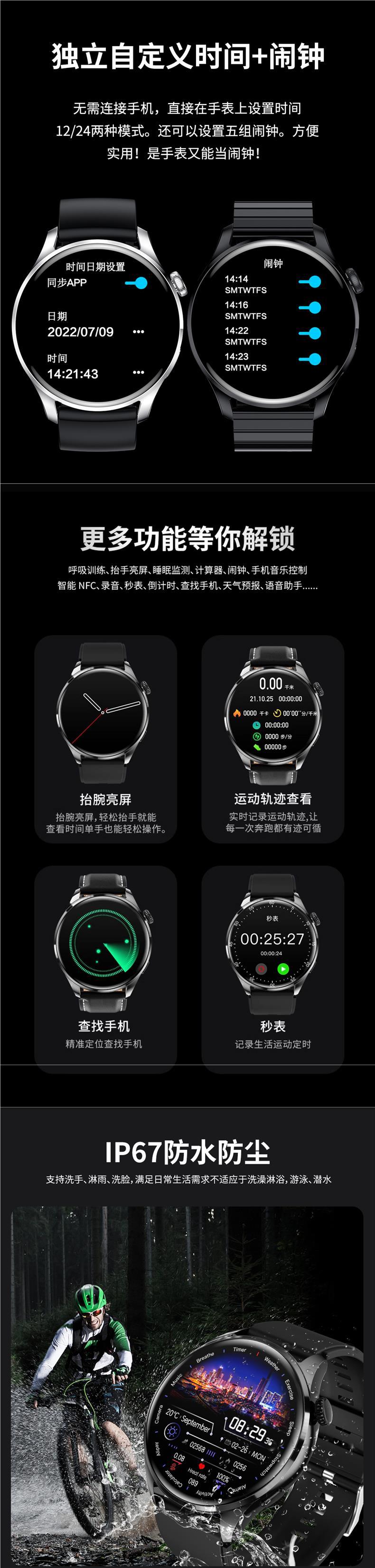 • 검정색 3바이트 스틸 벨트(고화질 통화 + 초장기 대기 시간 + WeChat 메시지 보기 + Alipay 결제 WeChat 결제 + NFC 액세스 제어 + 고화질 대형 화면 + 음악 재생)