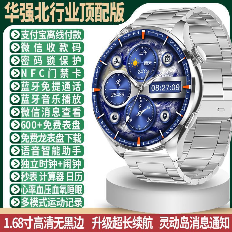 • 실버 밀라노 스틸 벨트(HD 통화 + 초장기 대기 시간 + WeChat 메시지 보기 + Alipay 결제 WeChat 결제 + NFC 액세스 제어 + 고화질 대형 화면 + 음악 재생)