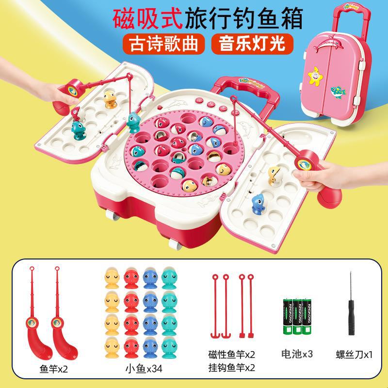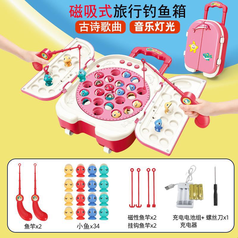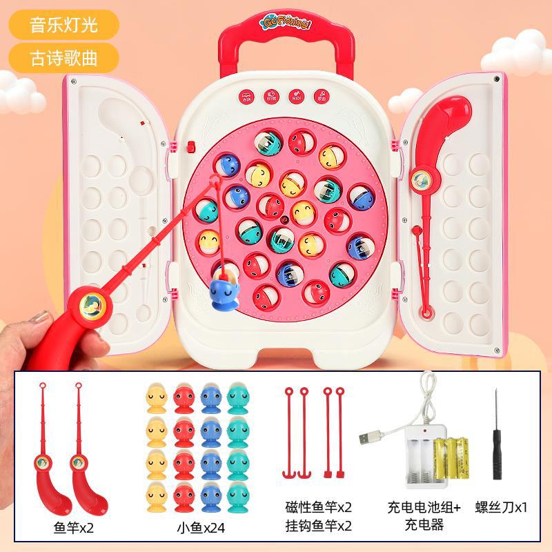 • 빛과 음악이 있는 자기 핑크 낚시 34 물고기 충전식 버전