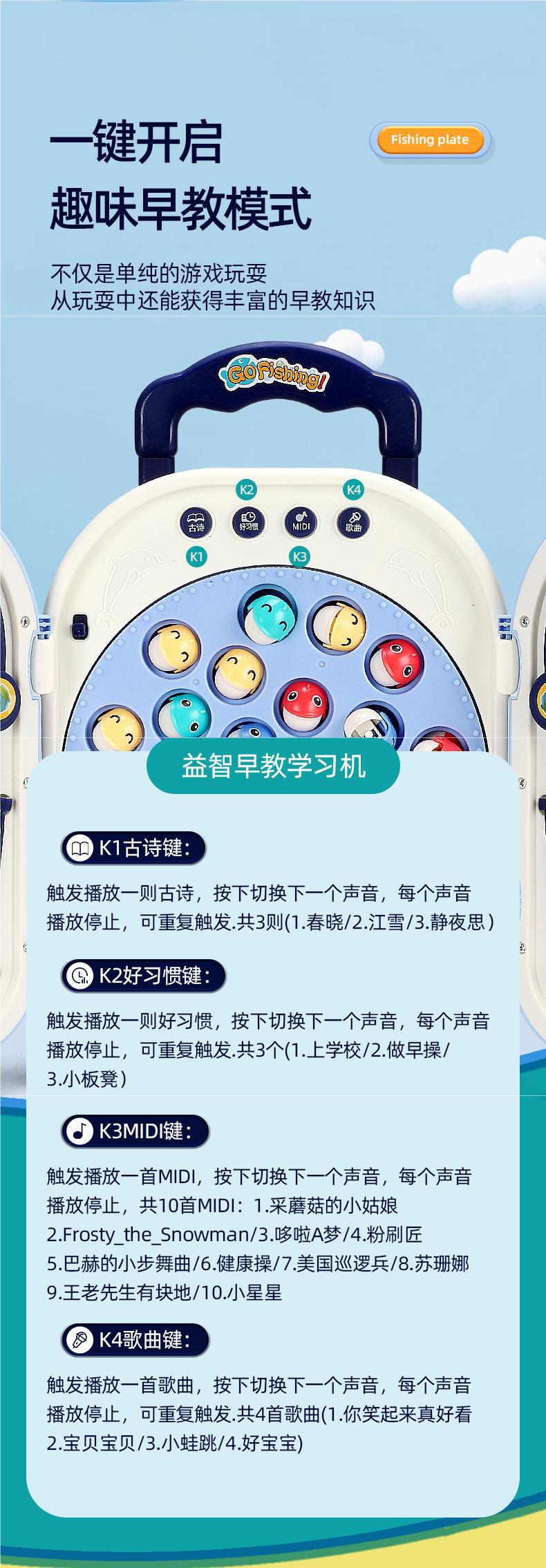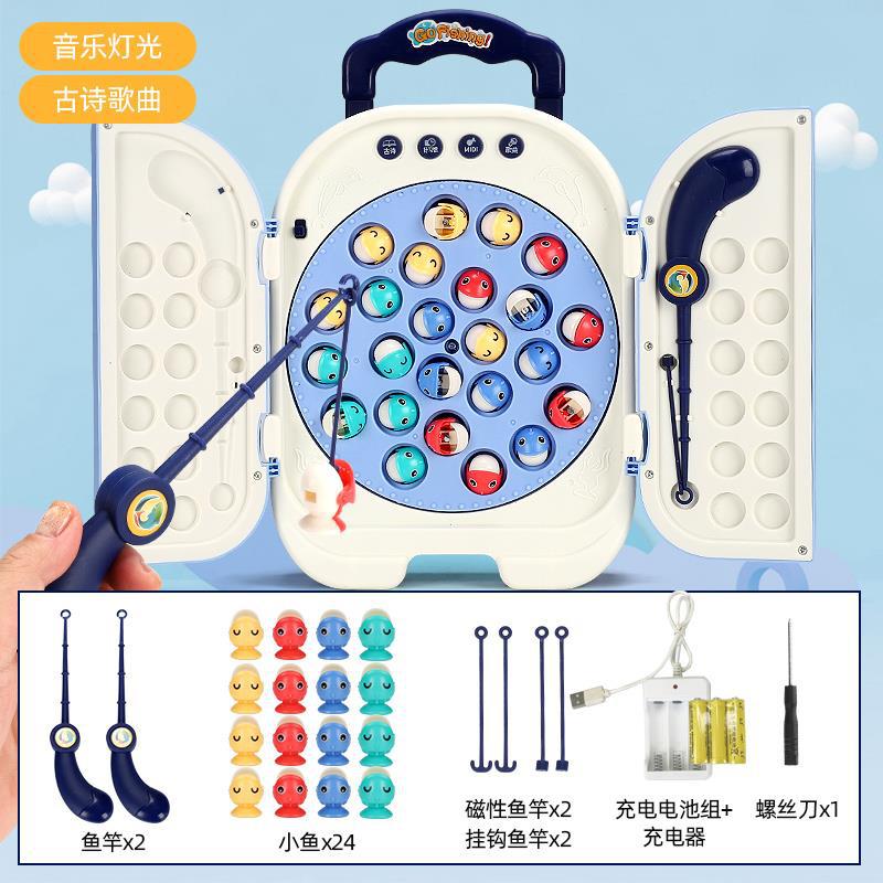 • [매장 프로모션] 빛과 음악이 포함된 마그네틱 블루 낚시 34 물고기 배터리 버전