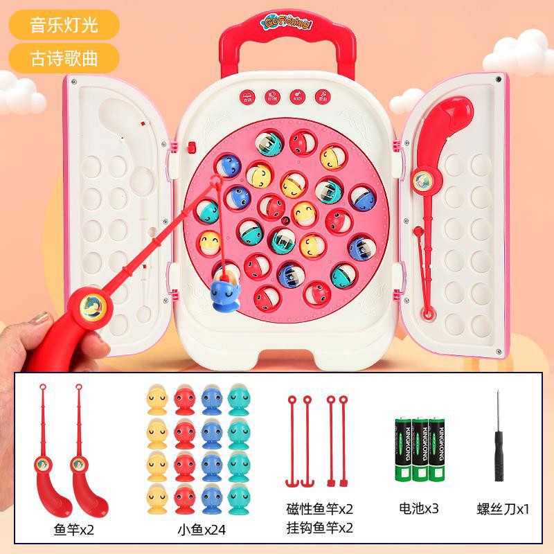 • 빛과 음악이 있는 자기 핑크 낚시 44 물고기 충전식 버전