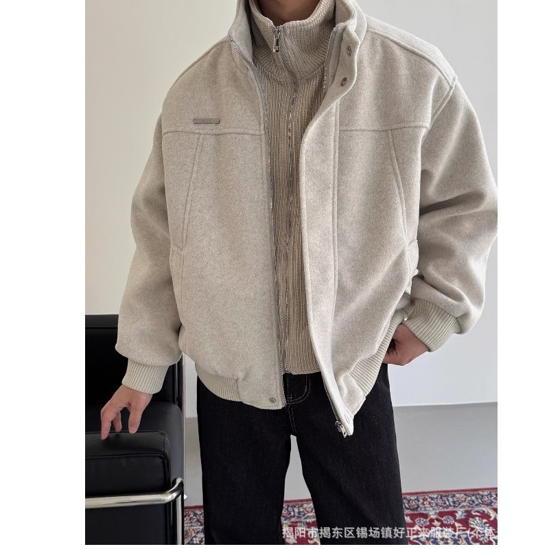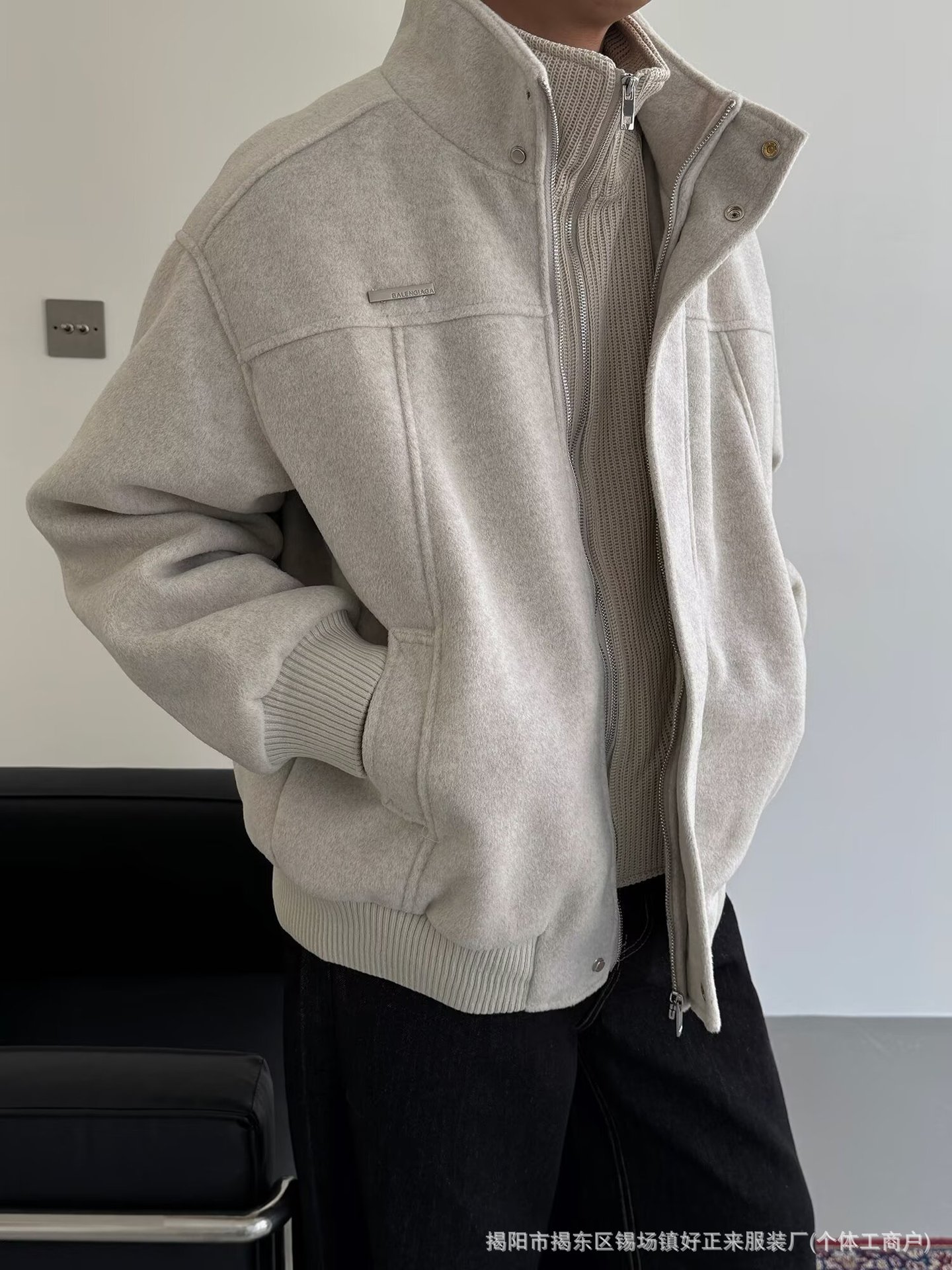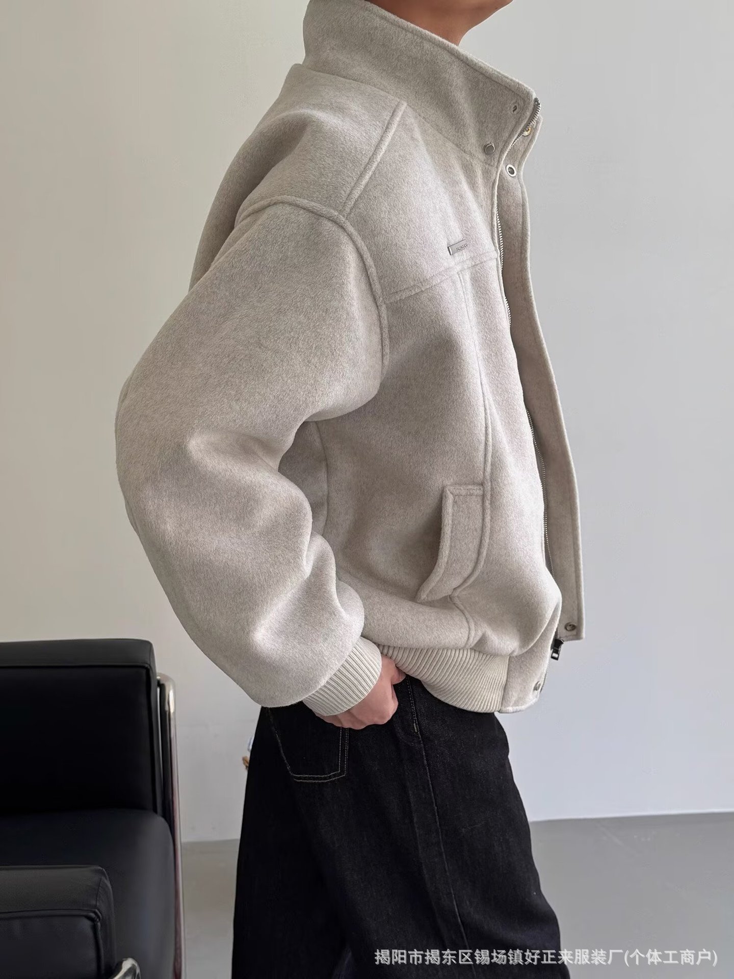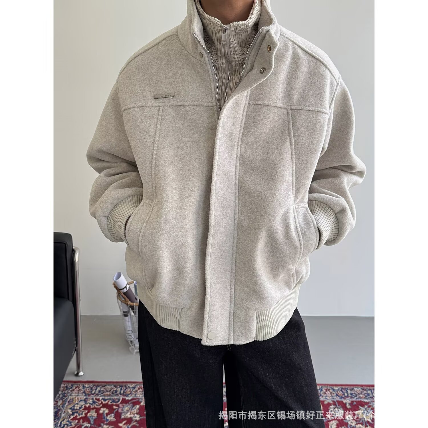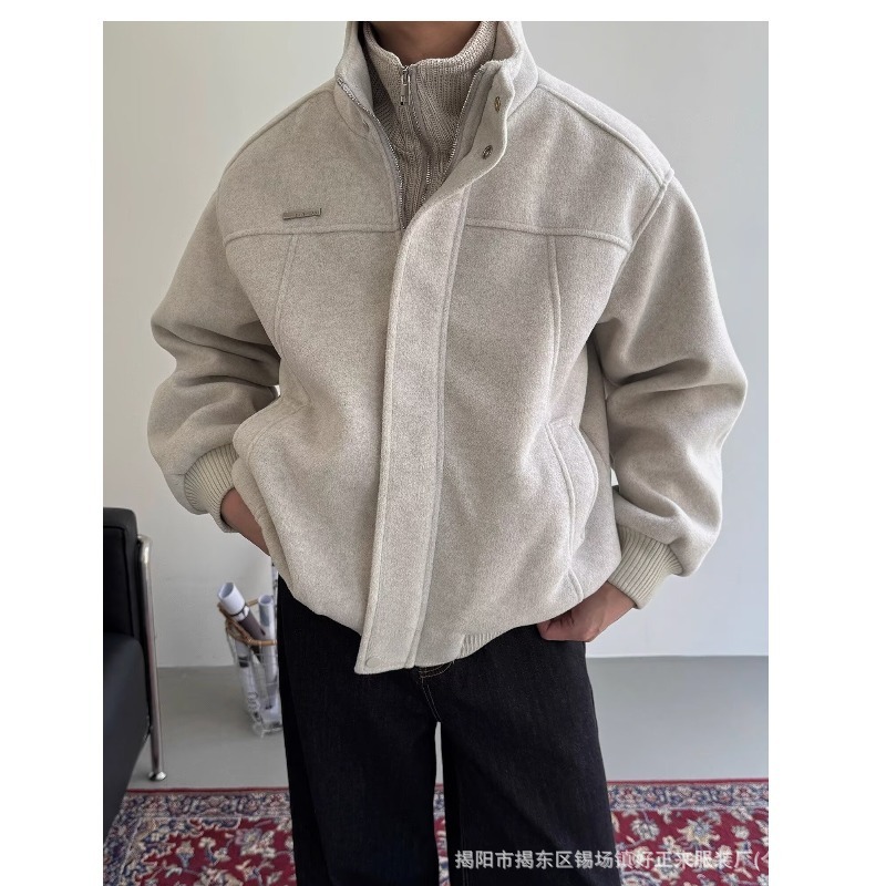 아메리칸 스타일 시미 터 슬리브 모직 재킷 남자의 가을과 겨울 두꺼운 유행 클렌핏 짧은 하이 엔드 스타일 수직 칼라 재킷스토어 가기