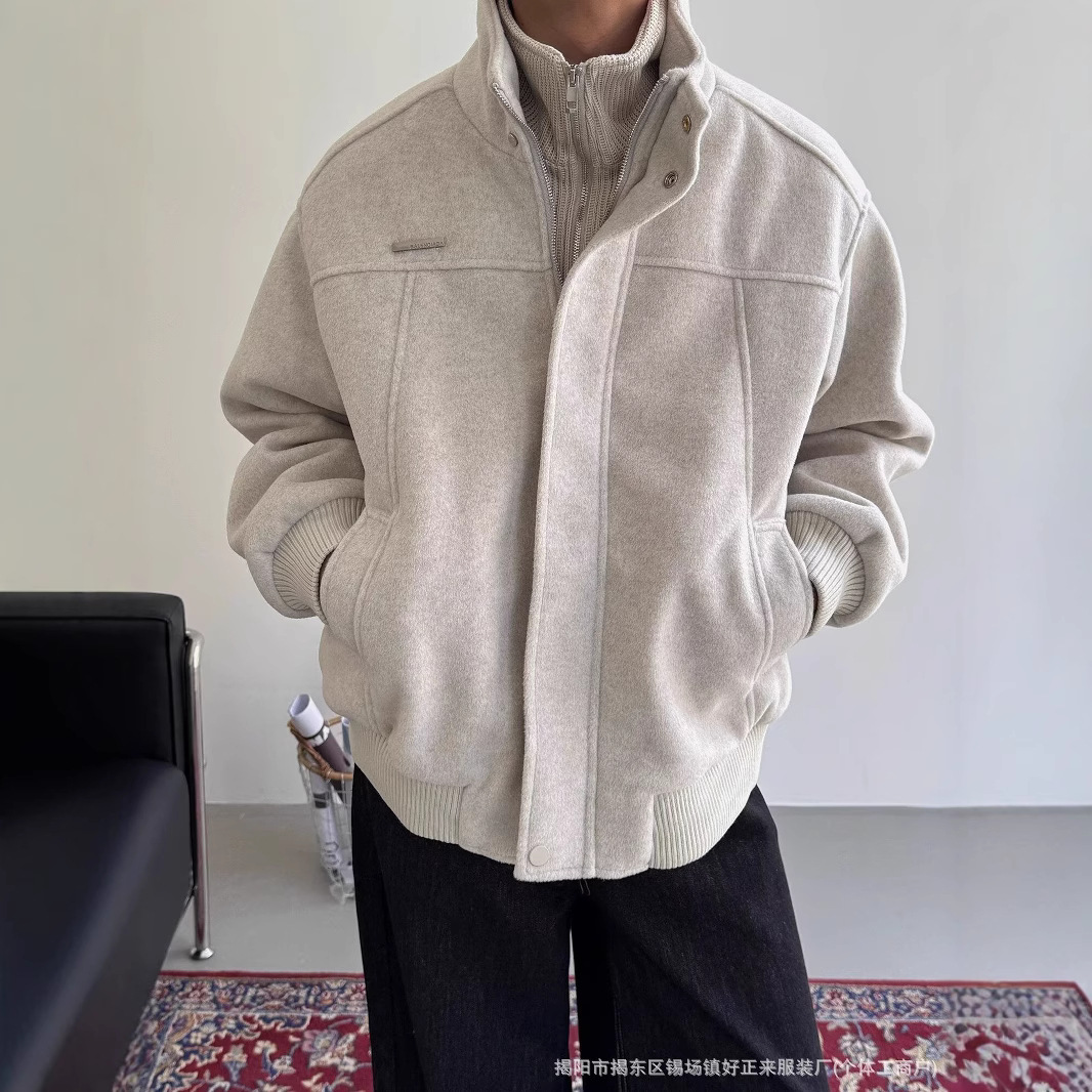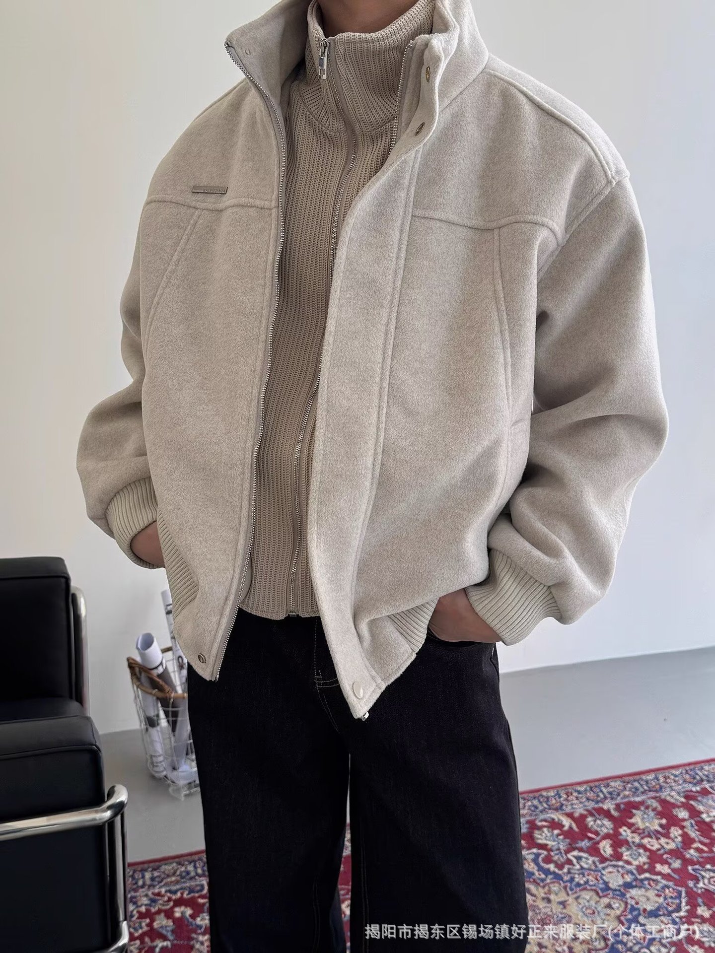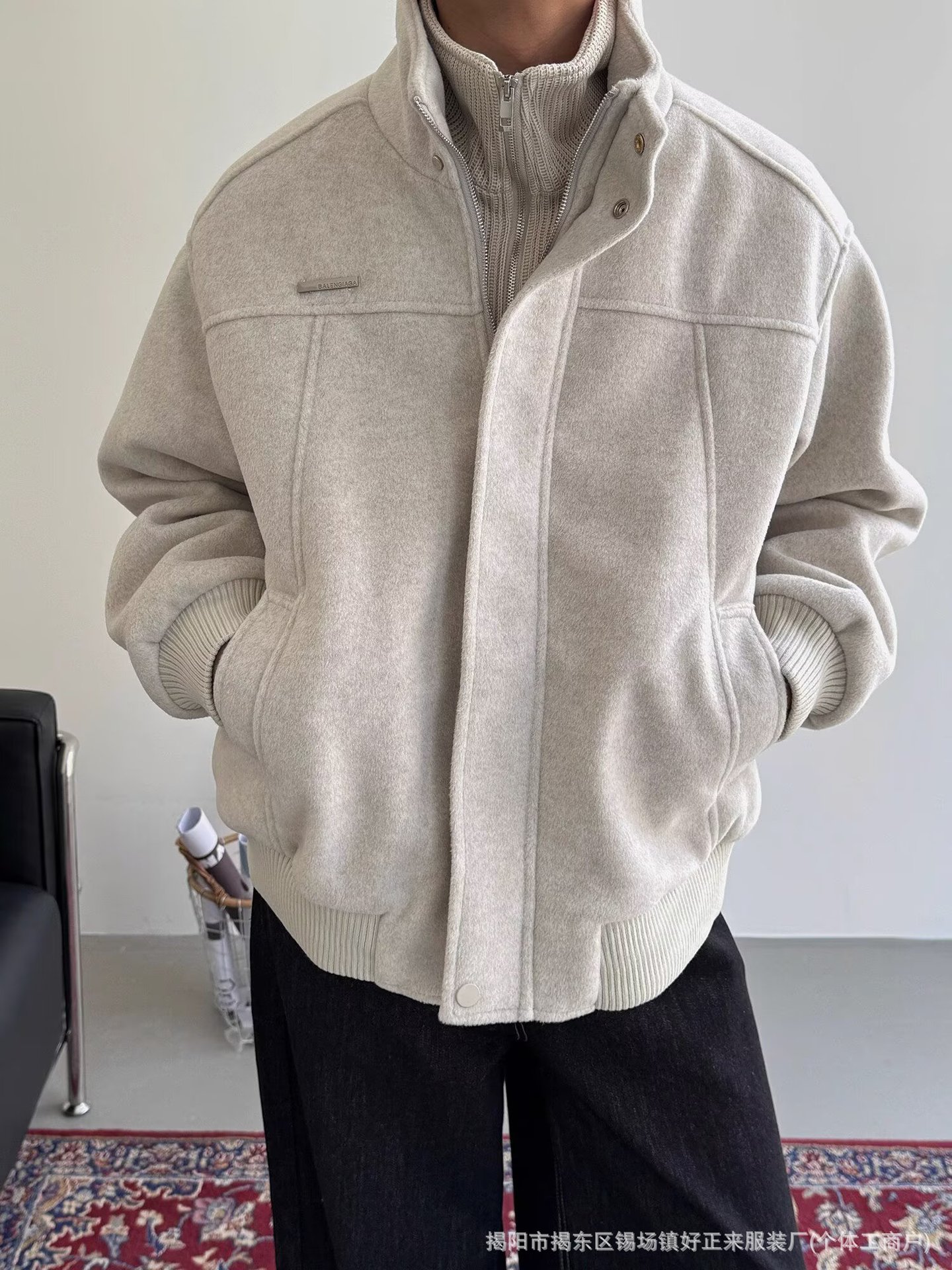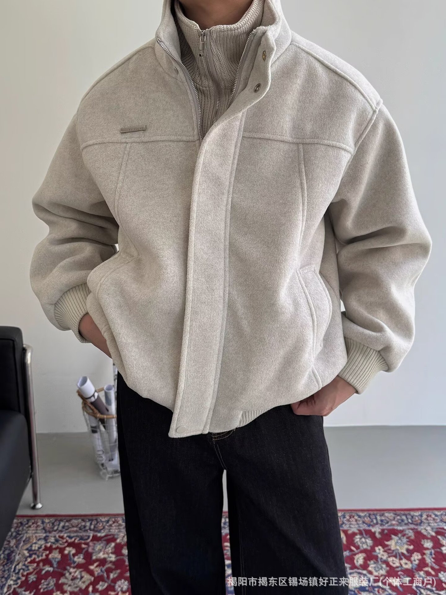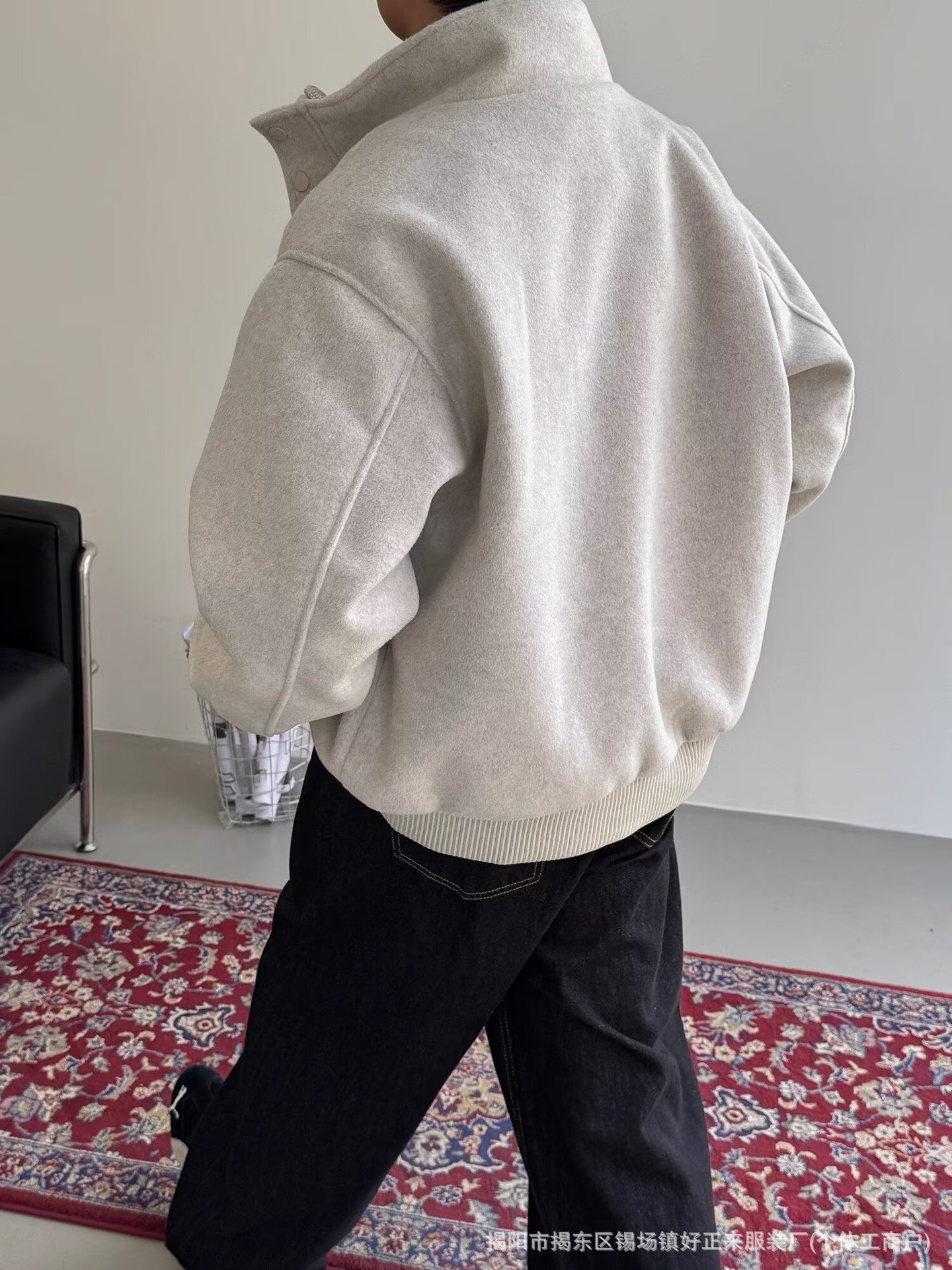 아메리칸 스타일 시미 터 슬리브 모직 재킷 남자의 가을과 겨울 두꺼운 유행 클렌핏 짧은 하이 엔드 스타일 수직 칼라 재킷스토어 가기