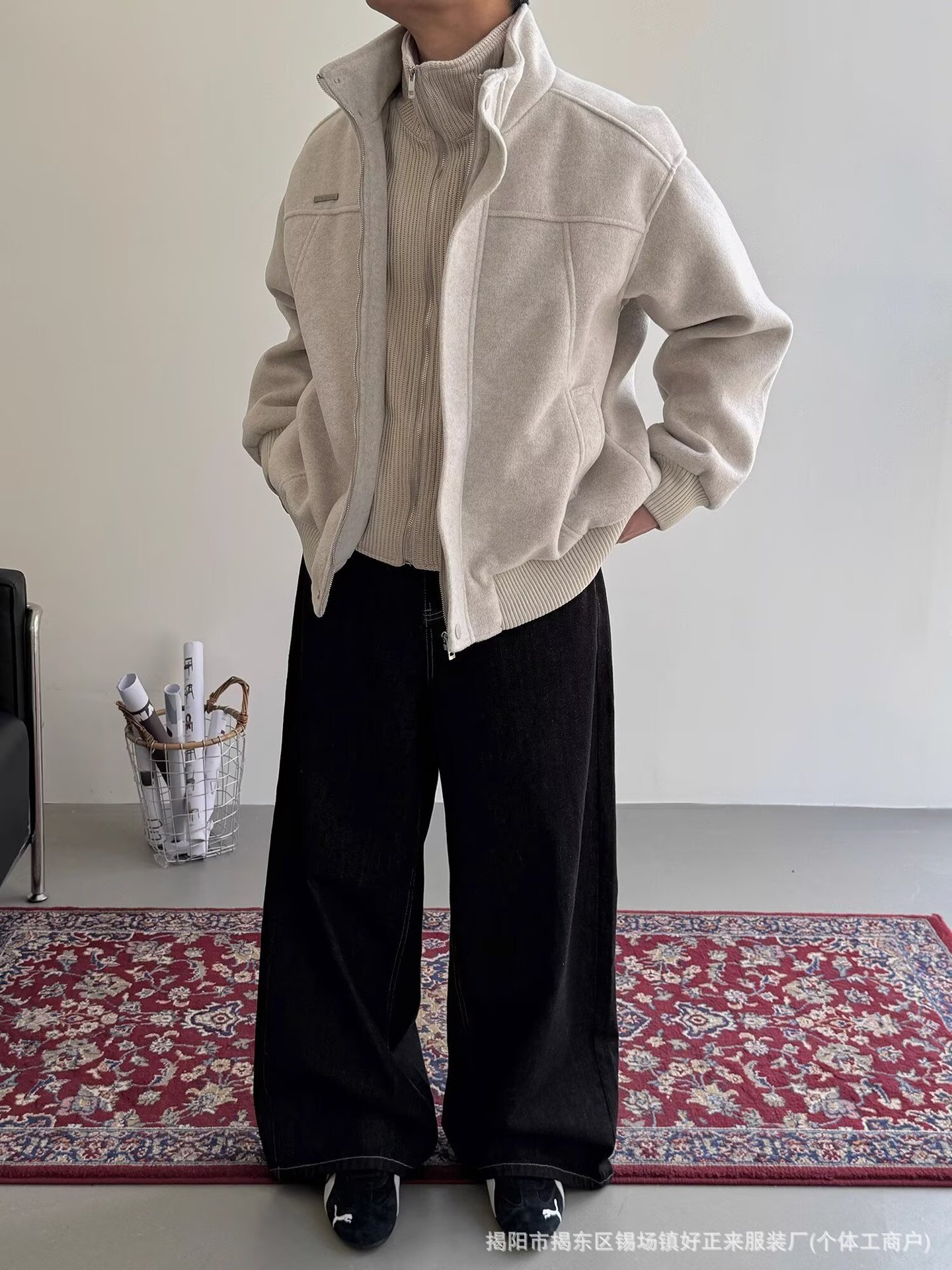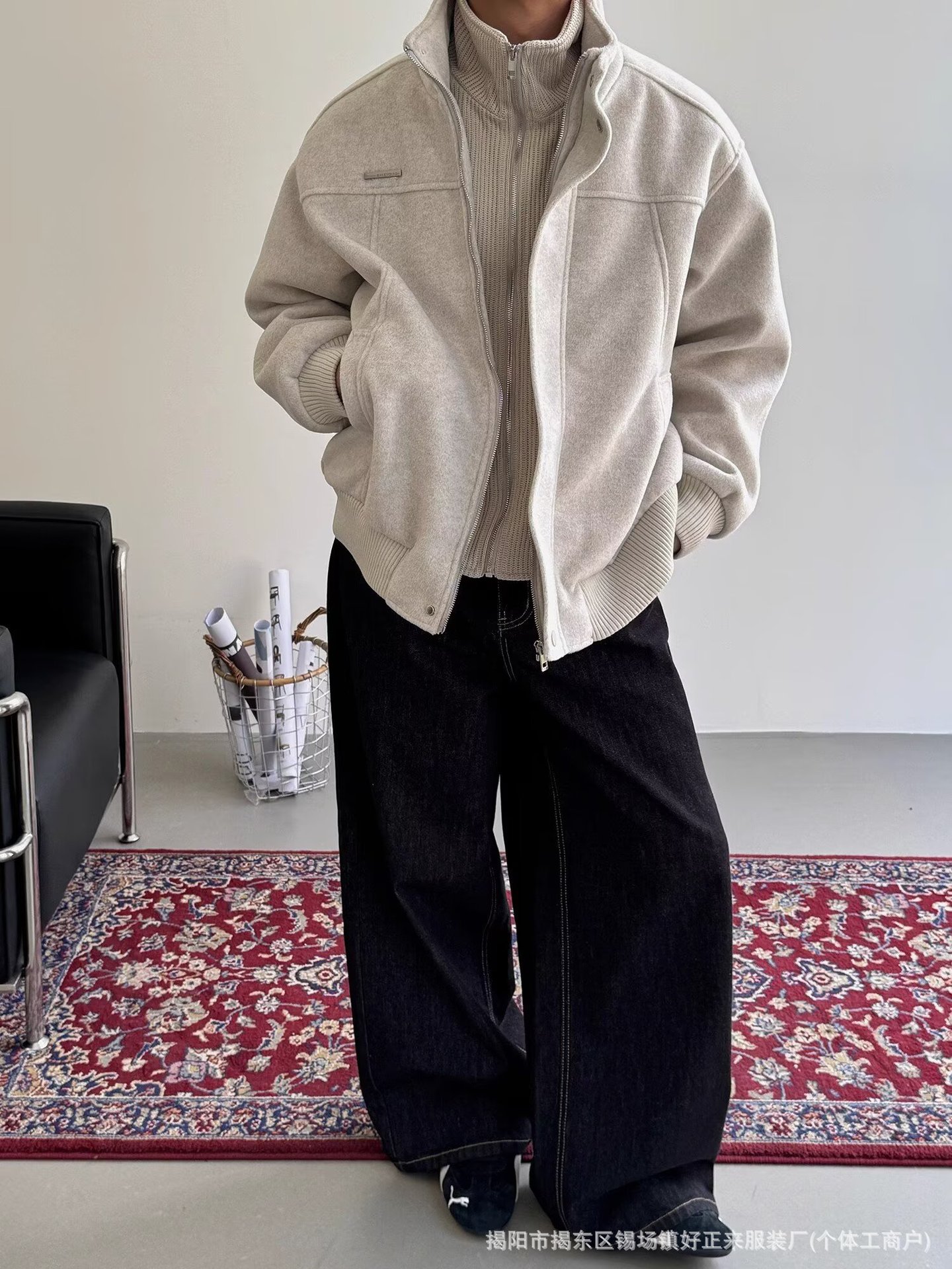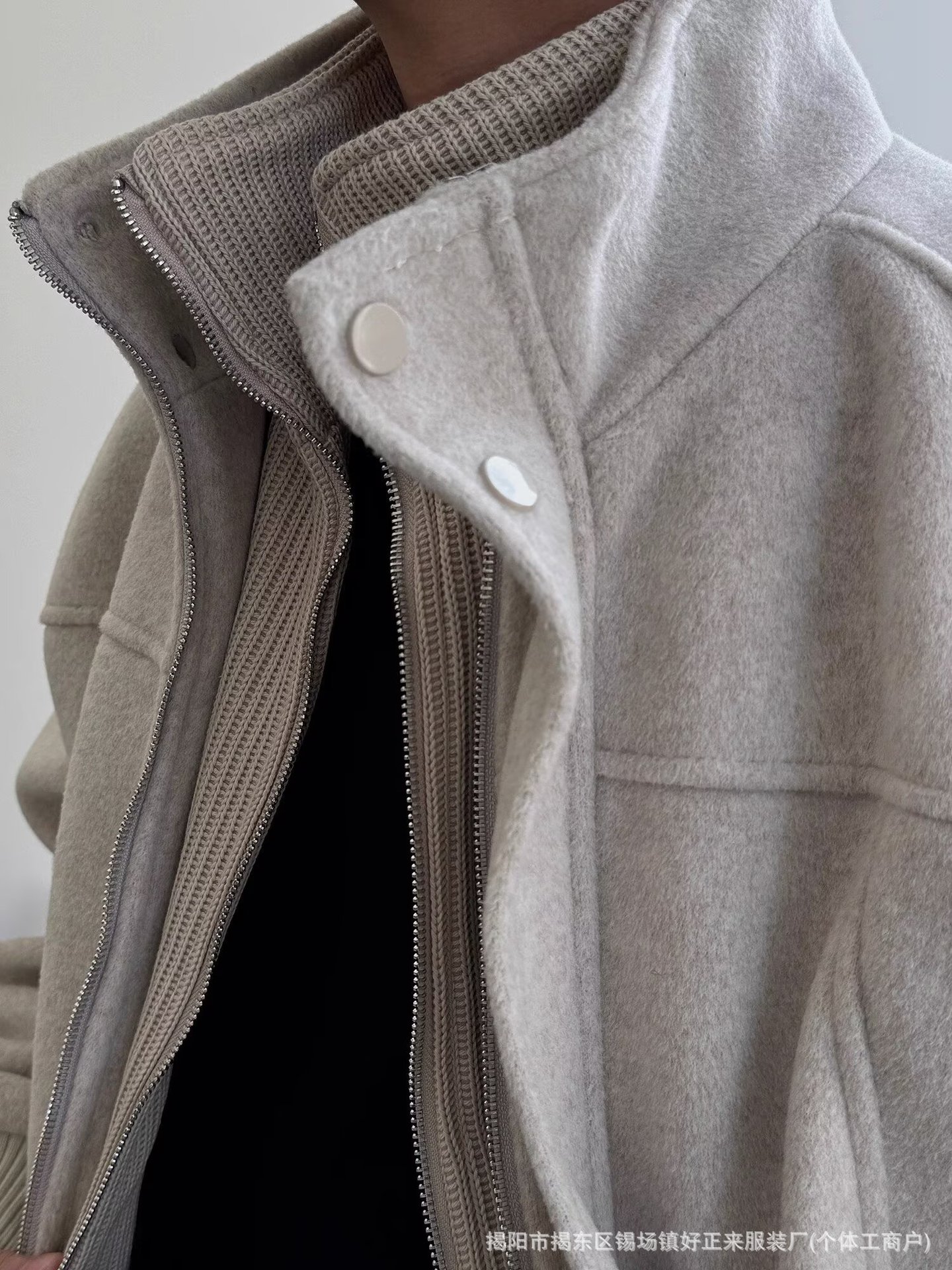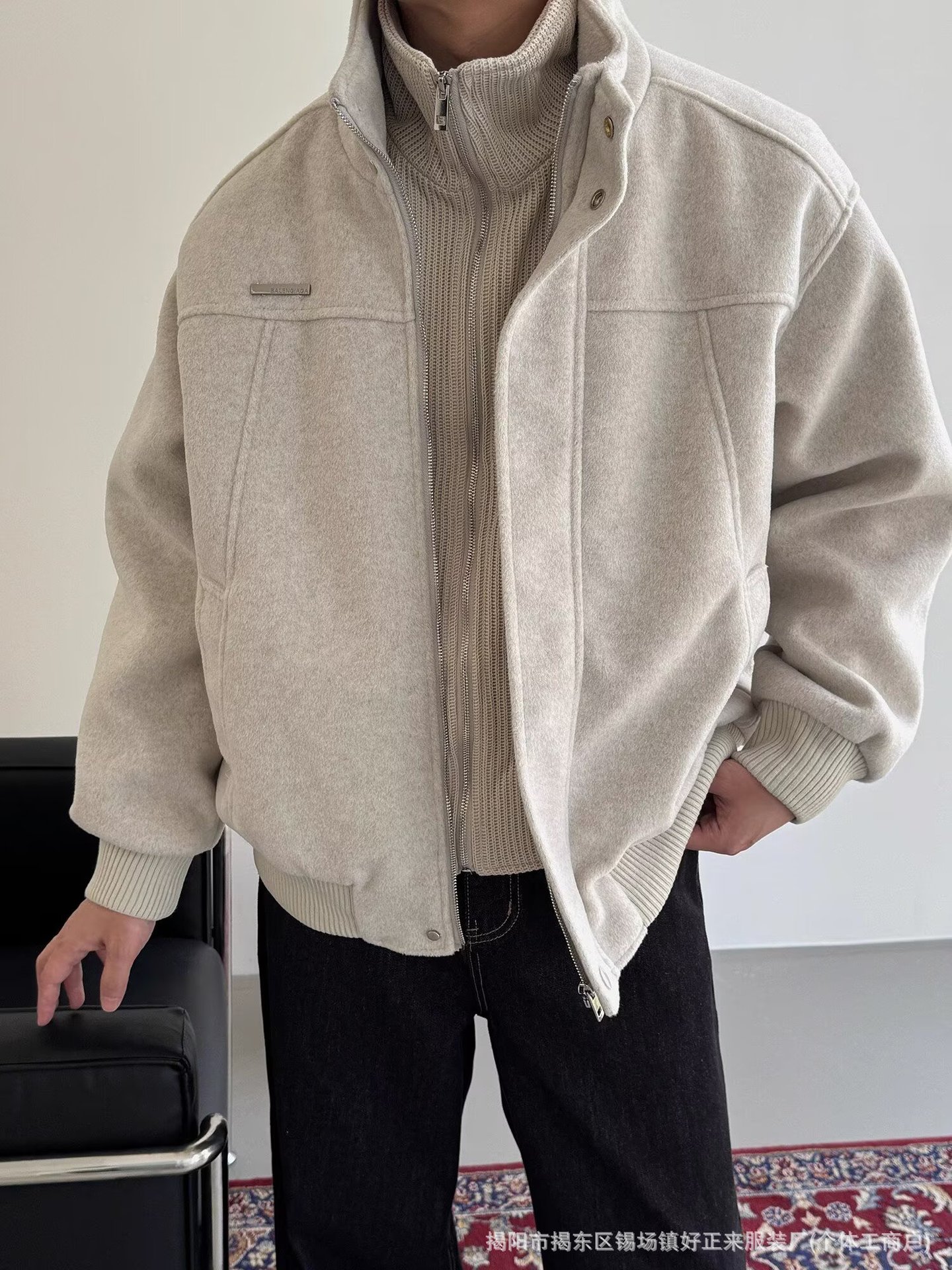 아메리칸 스타일 시미 터 슬리브 모직 재킷 남자의 가을과 겨울 두꺼운 유행 클렌핏 짧은 하이 엔드 스타일 수직 칼라 재킷스토어 가기