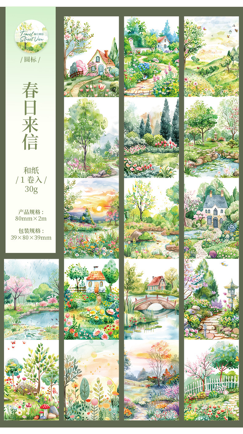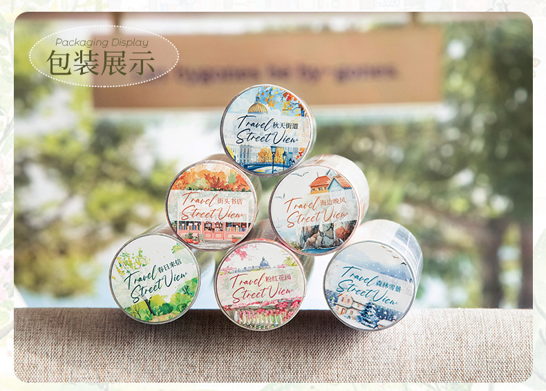 아름다운 날 대형 풍경 테이프 여행 스트리트 뷰 시리즈 복고풍 손 계정 장식 테이프스토어 가기