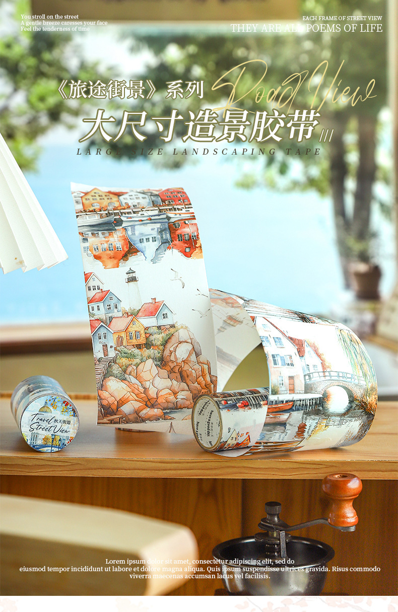 아름다운 날 대형 풍경 테이프 여행 스트리트 뷰 시리즈 복고풍 손 계정 장식 테이프