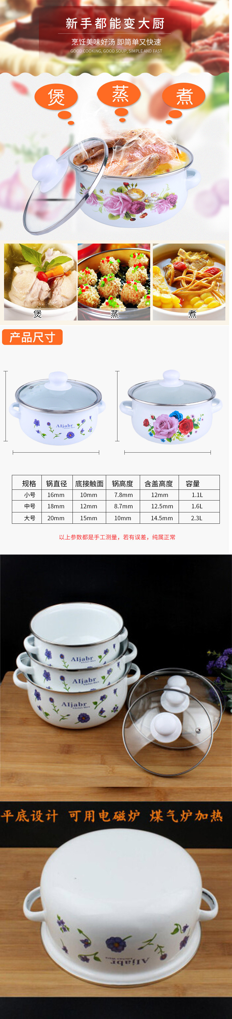 두꺼운 에나멜 수프 팟 가정용 더블 이어 팟, 국수 그릇 스튜 수프 냄비 유도 쿠커 가열 수프 그릇 약 냄비
