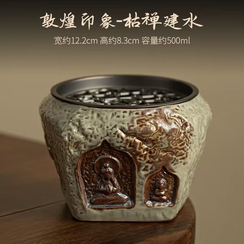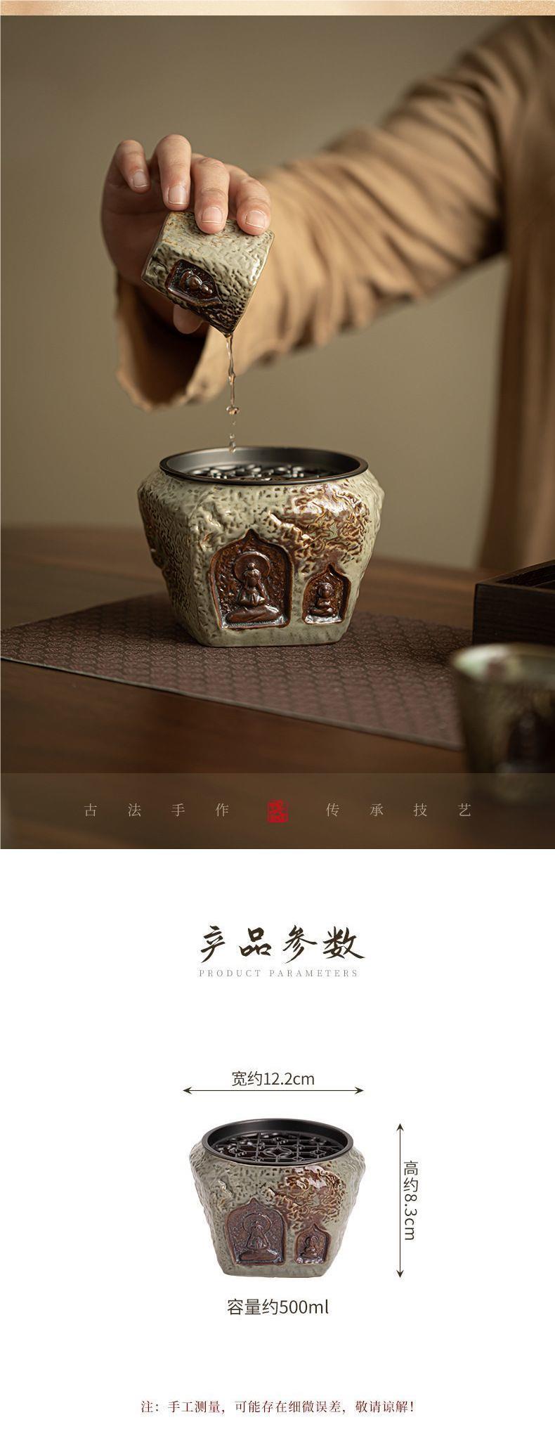Kui Zen Jianshui의 Dunhuang 인상 거친 도자기 레트로 세라믹 차 슬래그 버킷 폐수 탱크 물 Meng Kung Fu 차 세트 티 워시 컵 워시