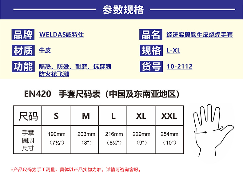 위트스 용접 장갑, 가스 차폐 용접용 두꺼운 이중층 내마모성 및 방열성 2117 가스 용접 장갑