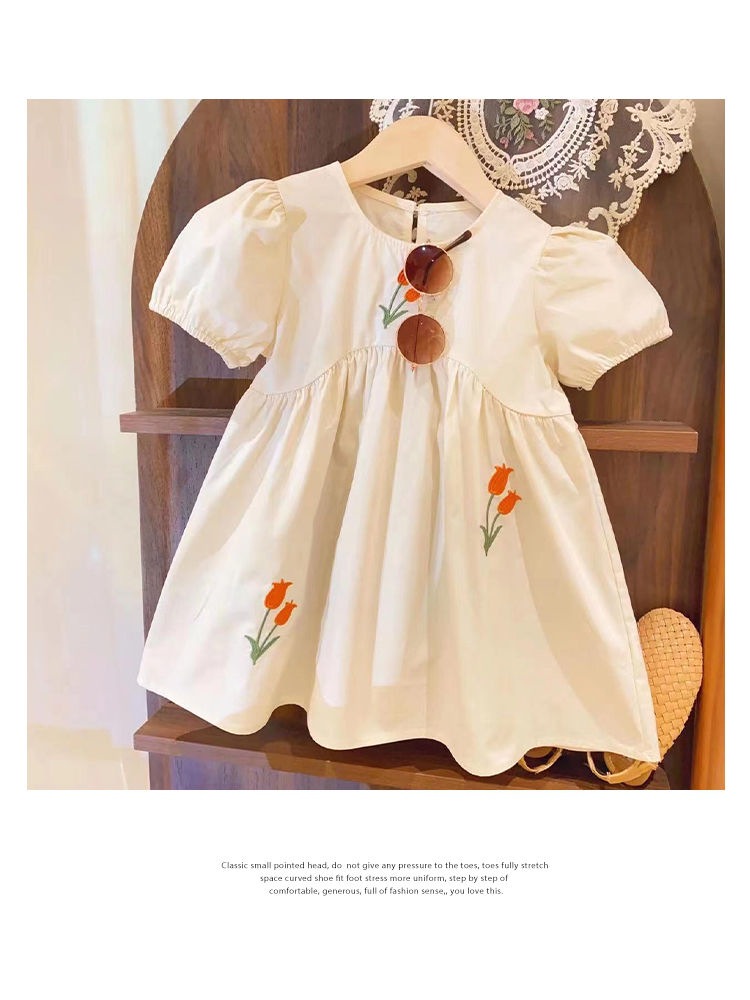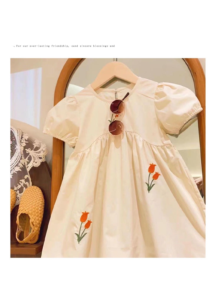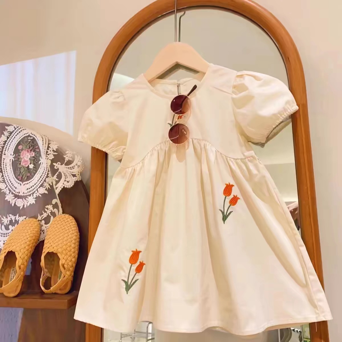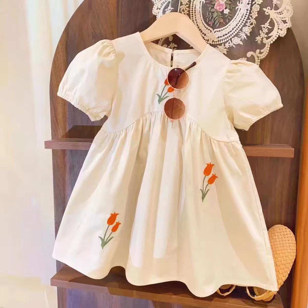 여자 여름 원피스 아기 세련된 어린이 독특한 유행 한국 스타일 꽃 자수 퍼프 소매 달콤한 공주 원피스스토어 가기