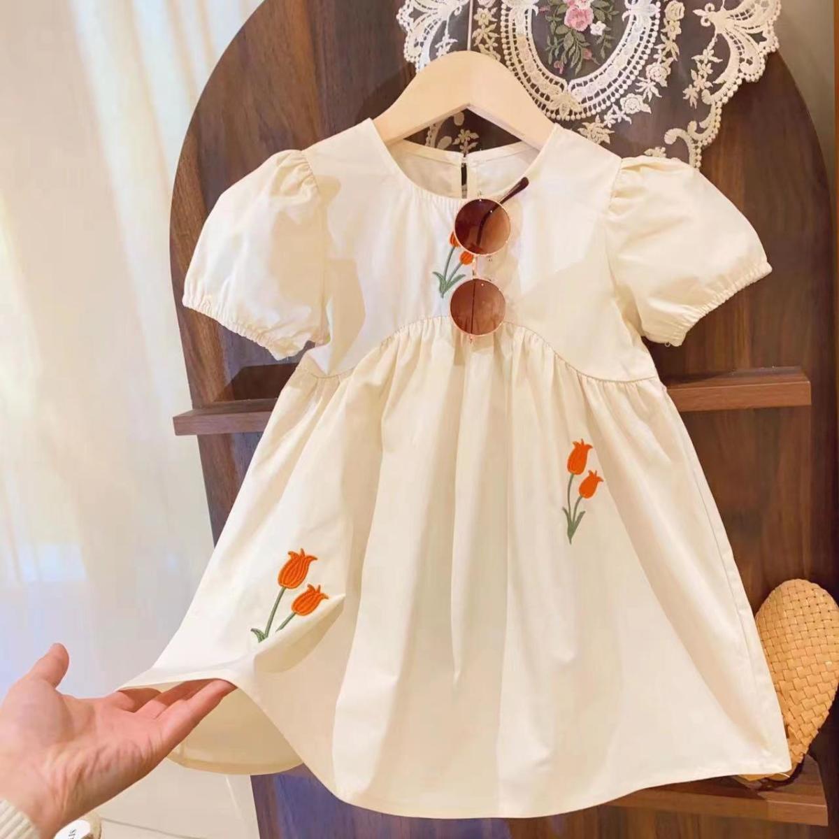 여자 여름 원피스 아기 세련된 어린이 독특한 유행 한국 스타일 꽃 자수 퍼프 소매 달콤한 공주 원피스