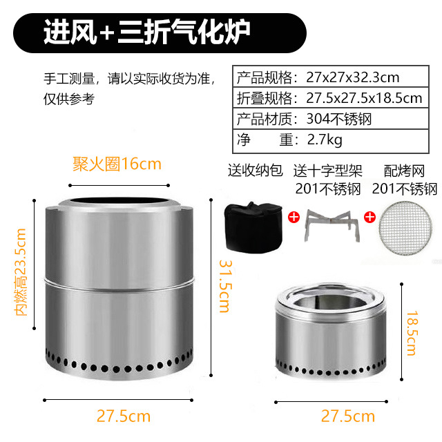 야외 정원 캠프파이어 스토브 휴대용 접이식 야외 물 끓이기 스토브 화로대 스테인리스 스토브 야외 장작 스토브 캠핑용스토어 가기