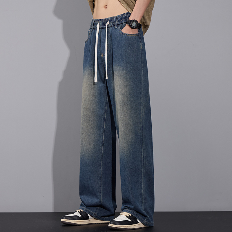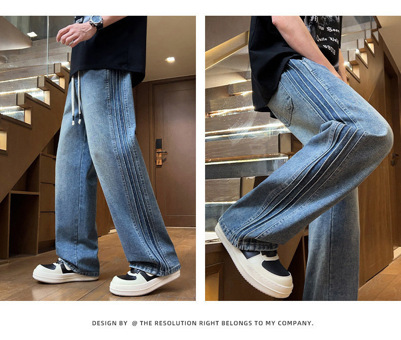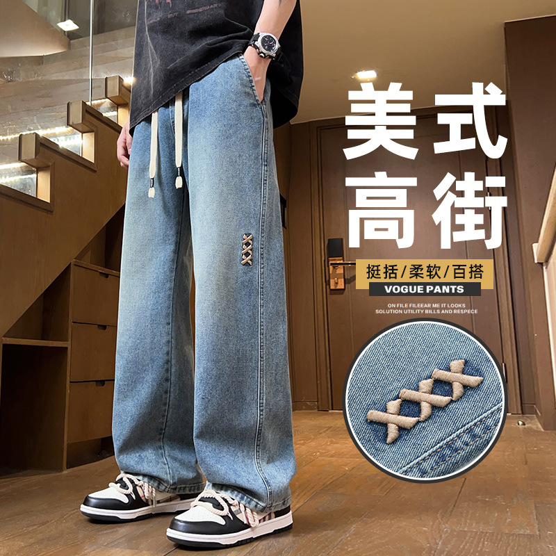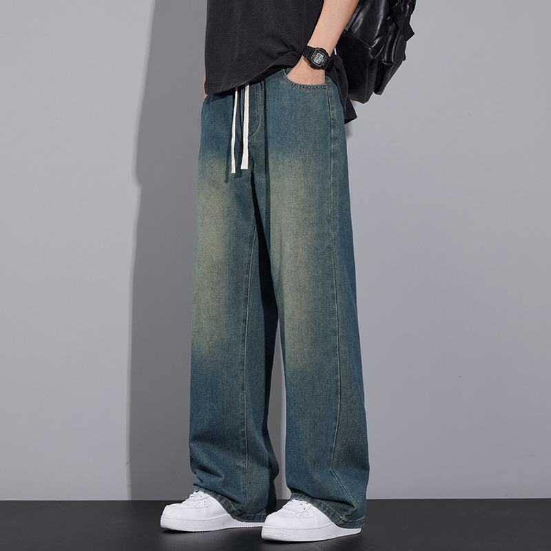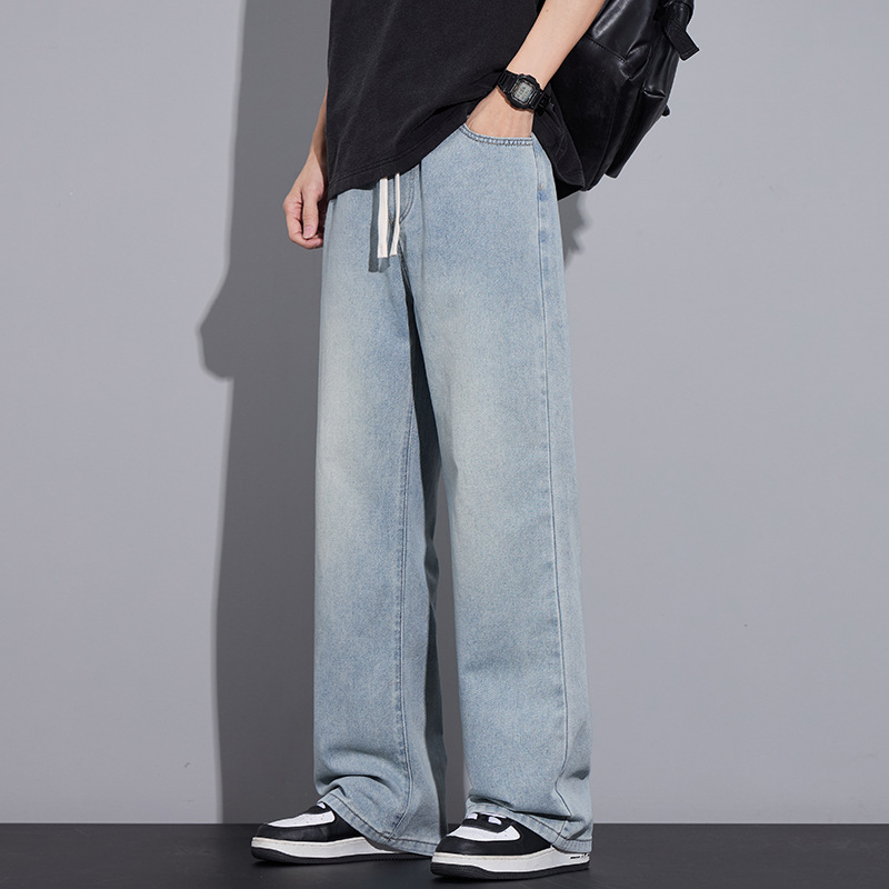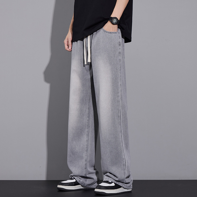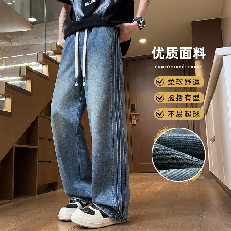 청바지 남자 2025 새로운 패션 남자 넓은 다리 바지 봄 남자 캐주얼 느슨한 스트레이트 바지스토어 가기