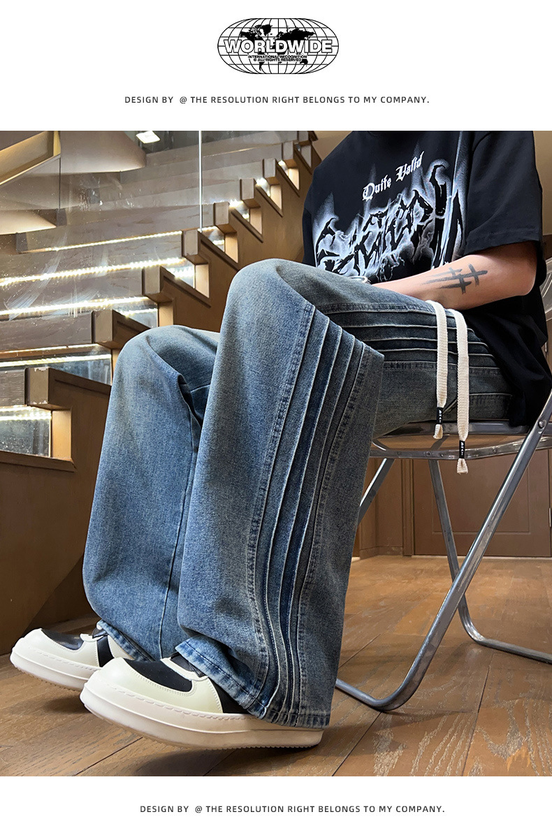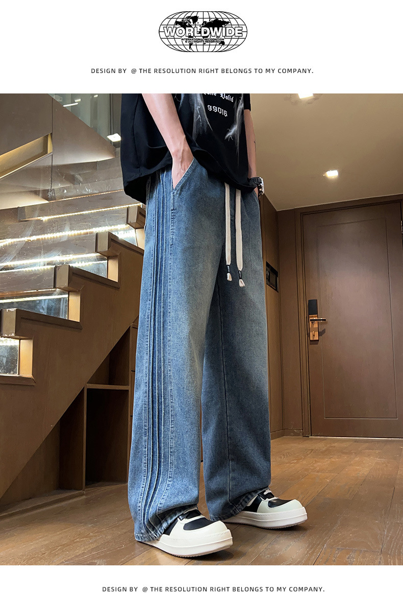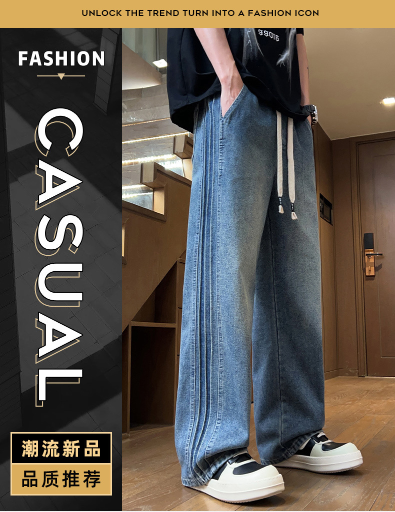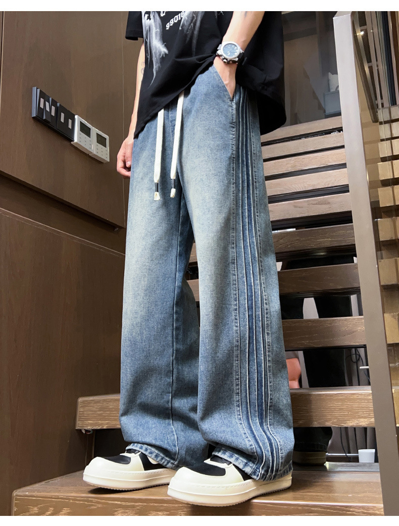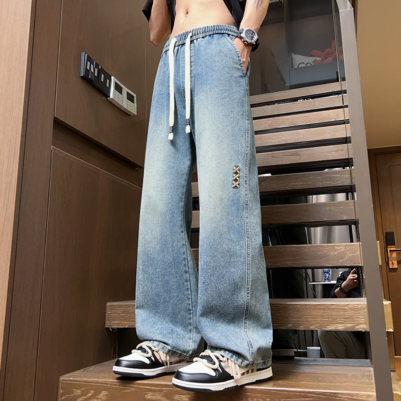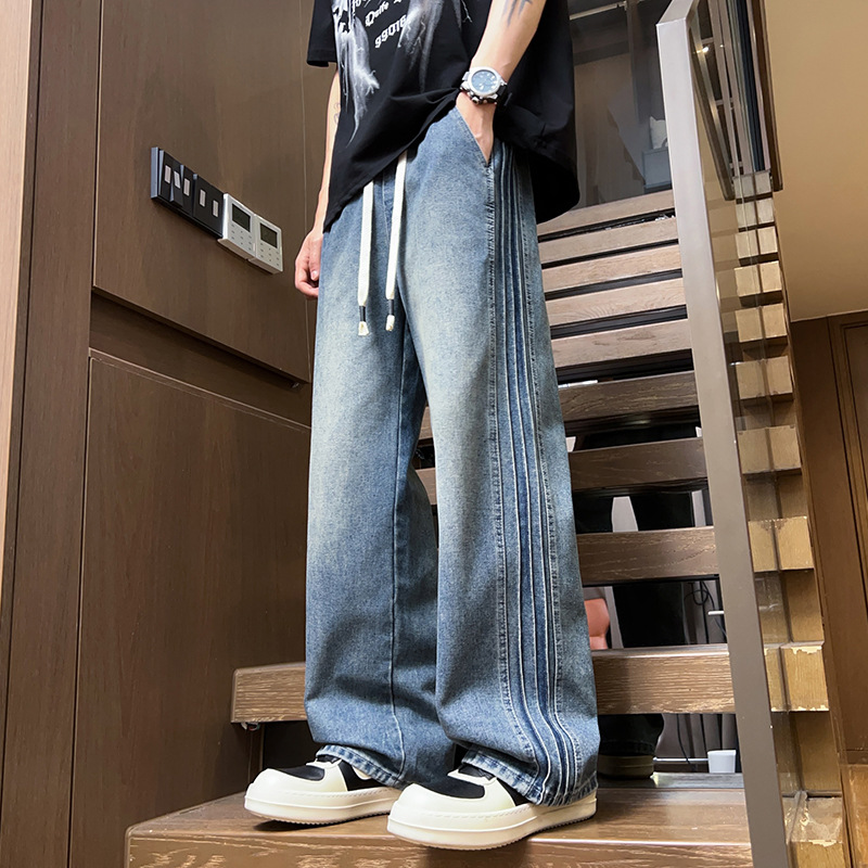 청바지 남자 2025 새로운 패션 남자 넓은 다리 바지 봄 남자 캐주얼 느슨한 스트레이트 바지스토어 가기