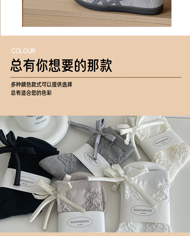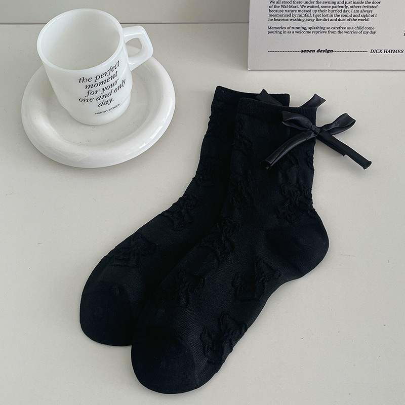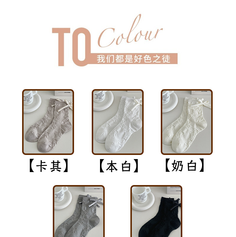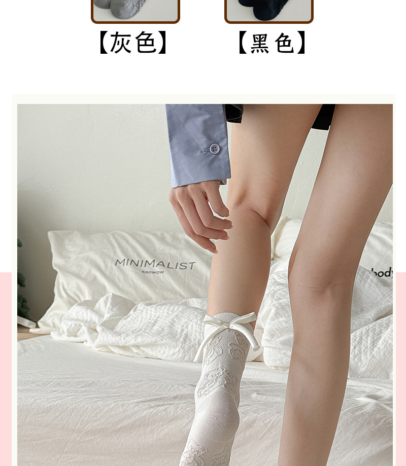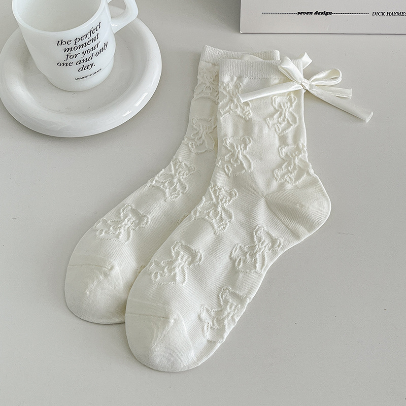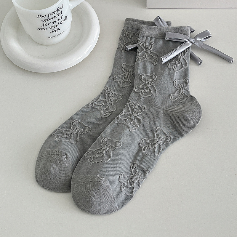 봄과 여름 회색 활 뼈없는 양말 Miu 시리즈 일본 3 차원 Anaglyph Bear Mid-Cylinder All-Match Girls 스택 양말