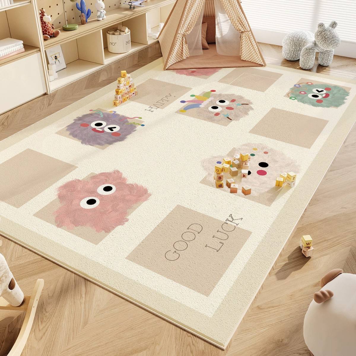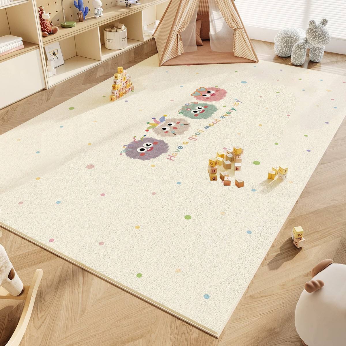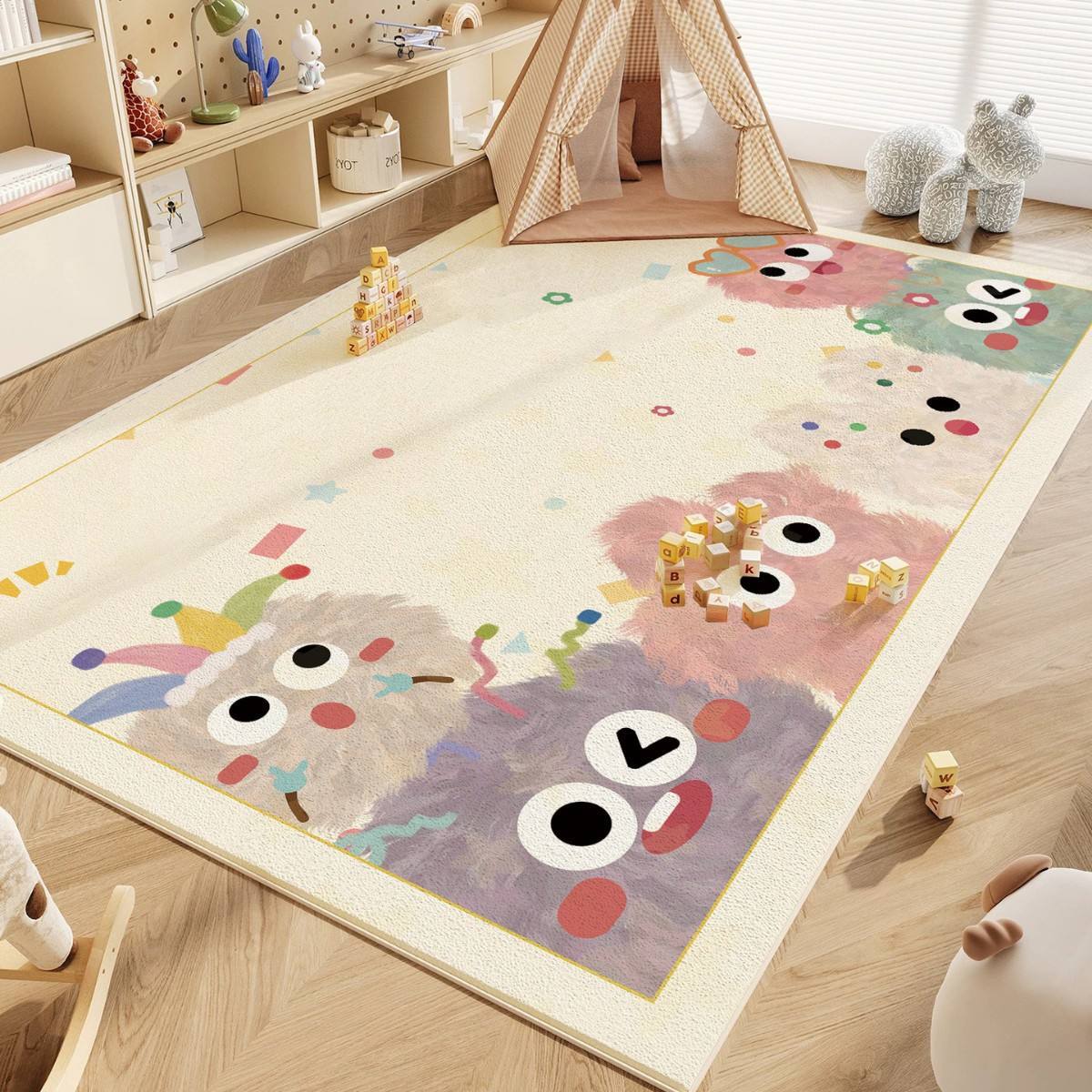 어린이 방 거실 크리스탈 벨벳 카펫 먼지 방지 쉬운 케어 만화 커피 테이블 담요 가정용 흡수성 침실 담요