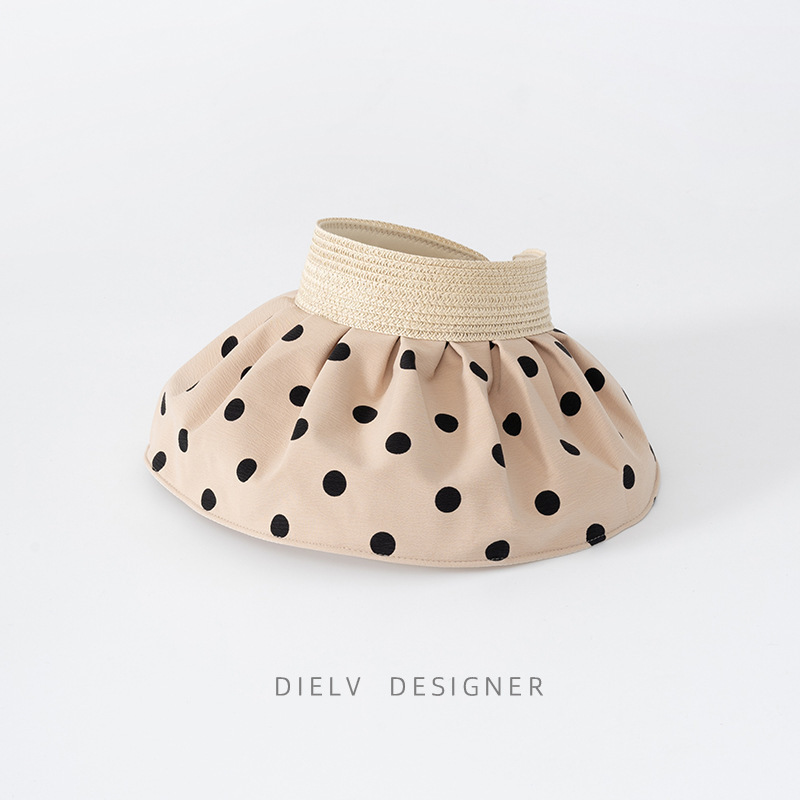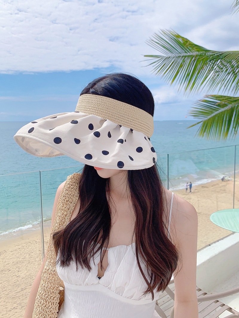 여름 큰 처마 웨이브 도트 빈 탑 모자 여성 야외 여행 통기성 태양 모자 안티 자외선 한국 패션 태양 모자