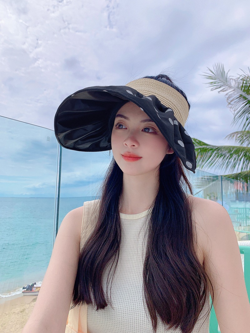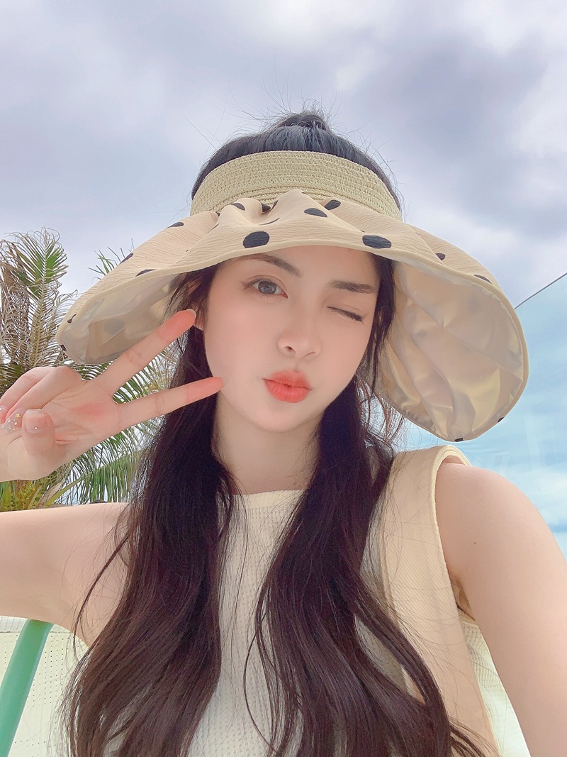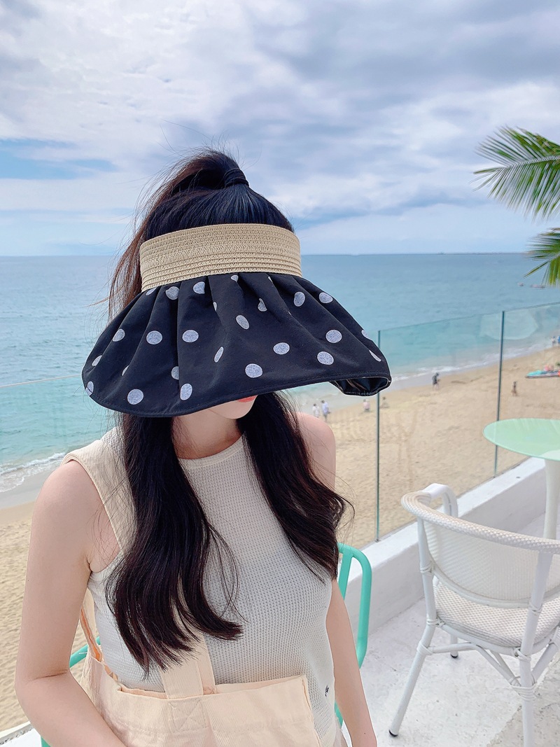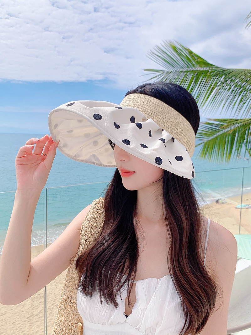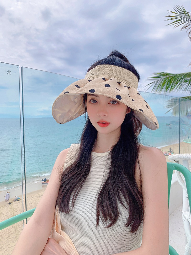 여름 큰 처마 웨이브 도트 빈 탑 모자 여성 야외 여행 통기성 태양 모자 안티 자외선 한국 패션 태양 모자스토어 가기