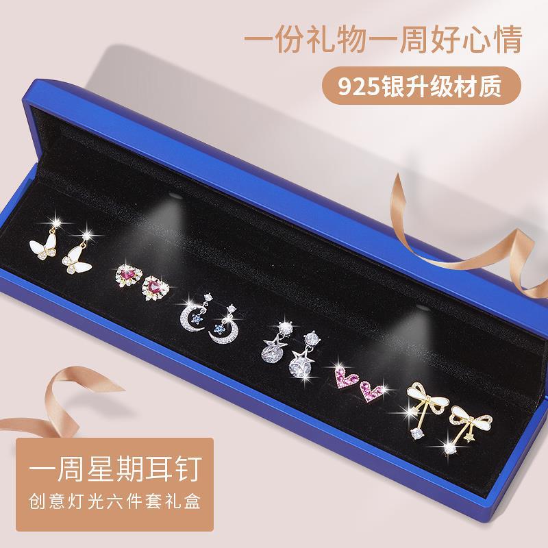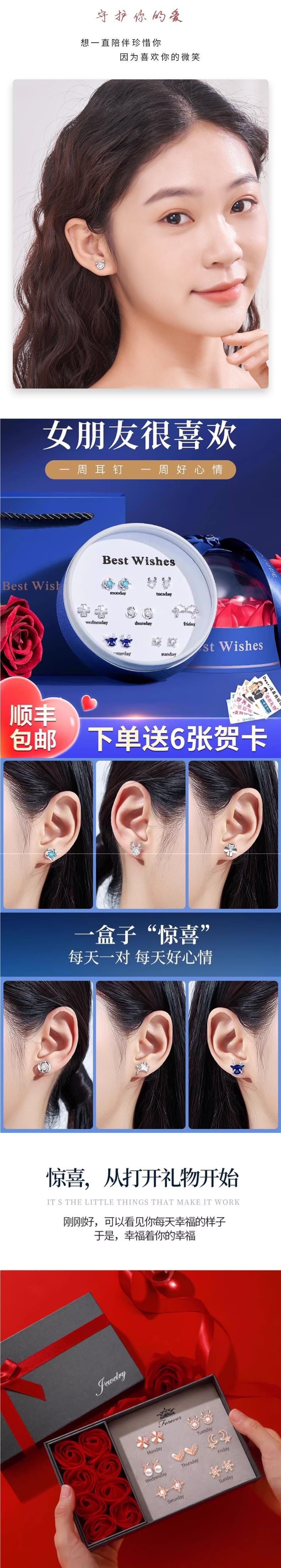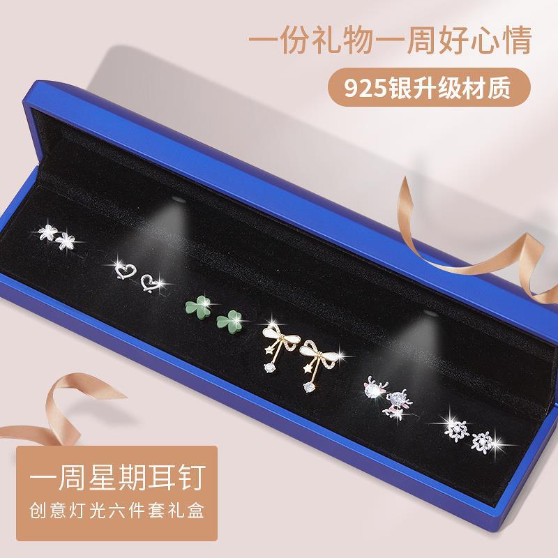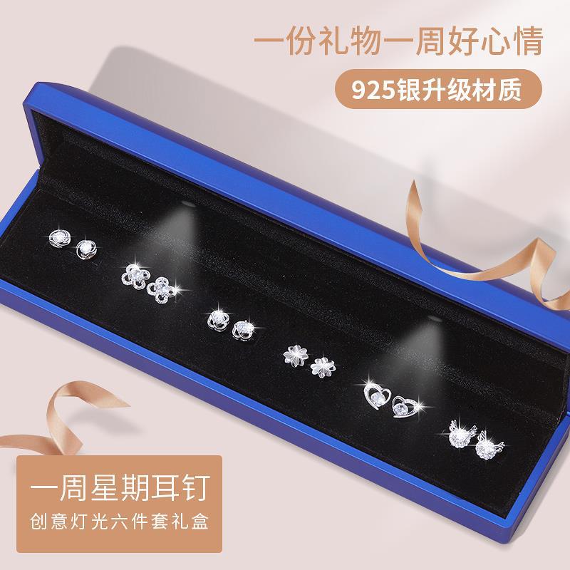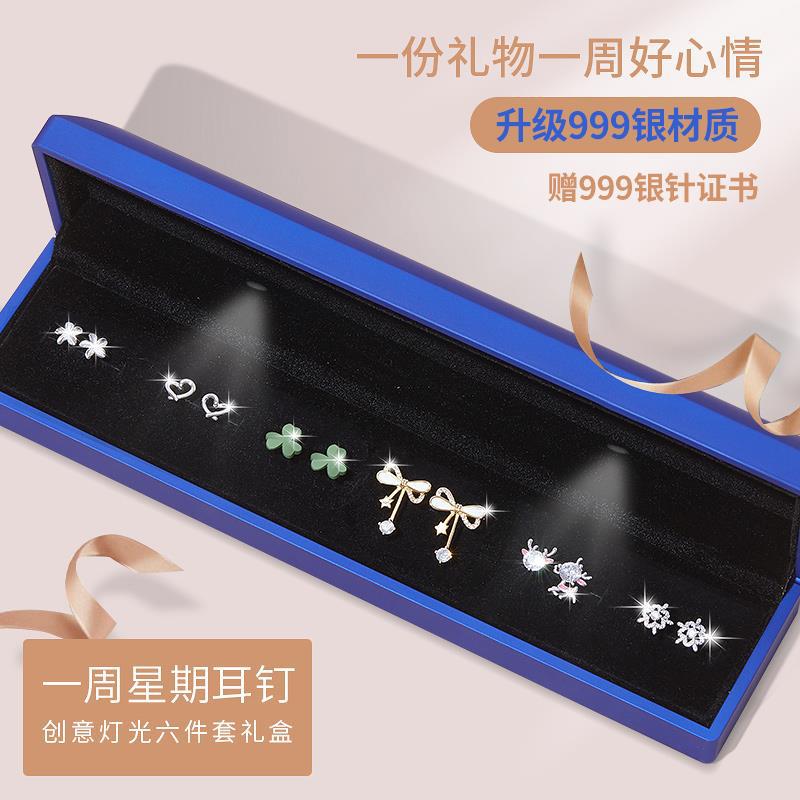 • [점장 점장] 999 실버로 업그레이드⭐일주일 귀걸이 B [라이트 선물 상자] 인증서 포함
