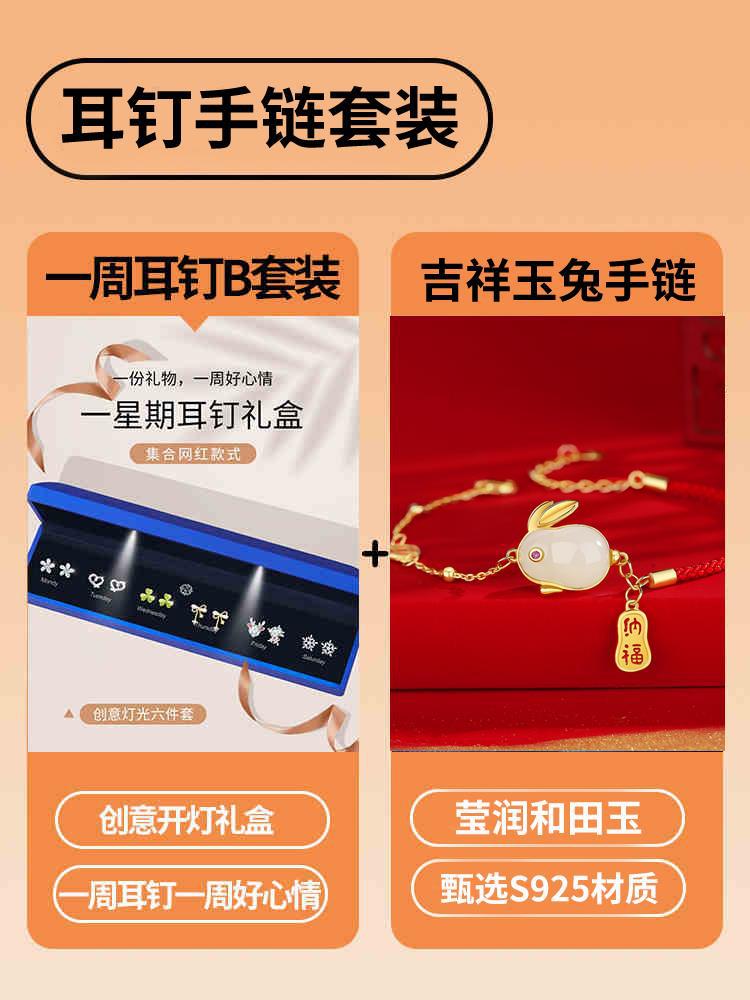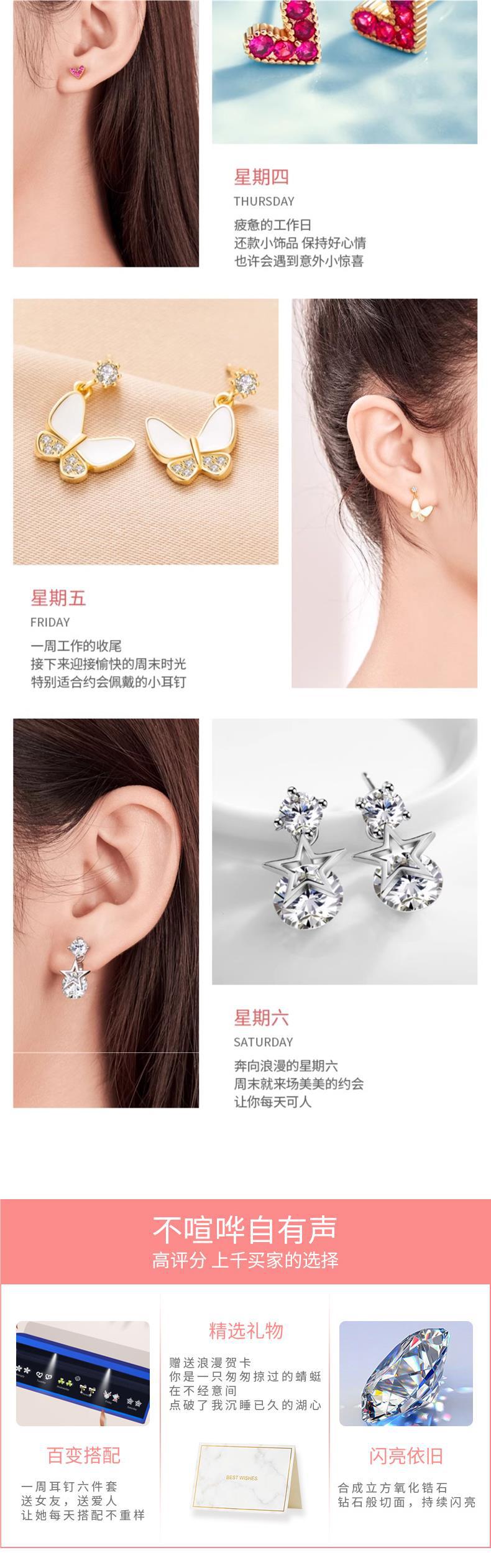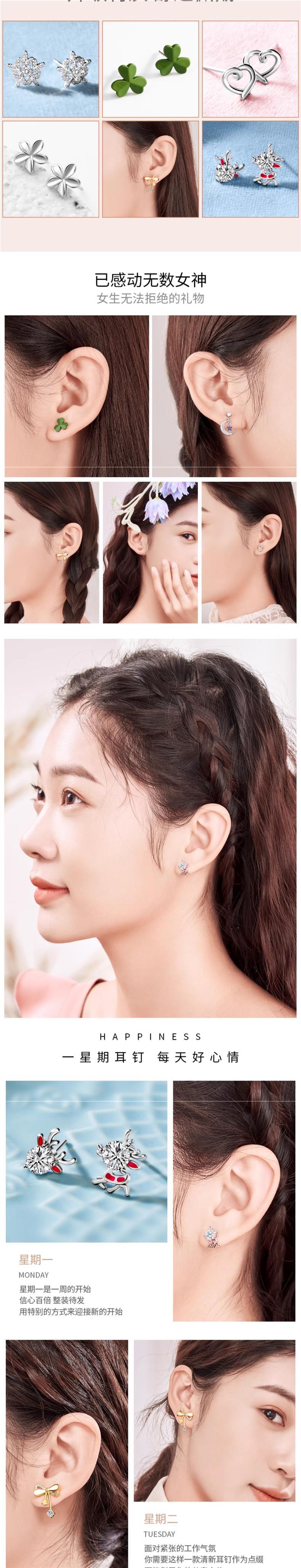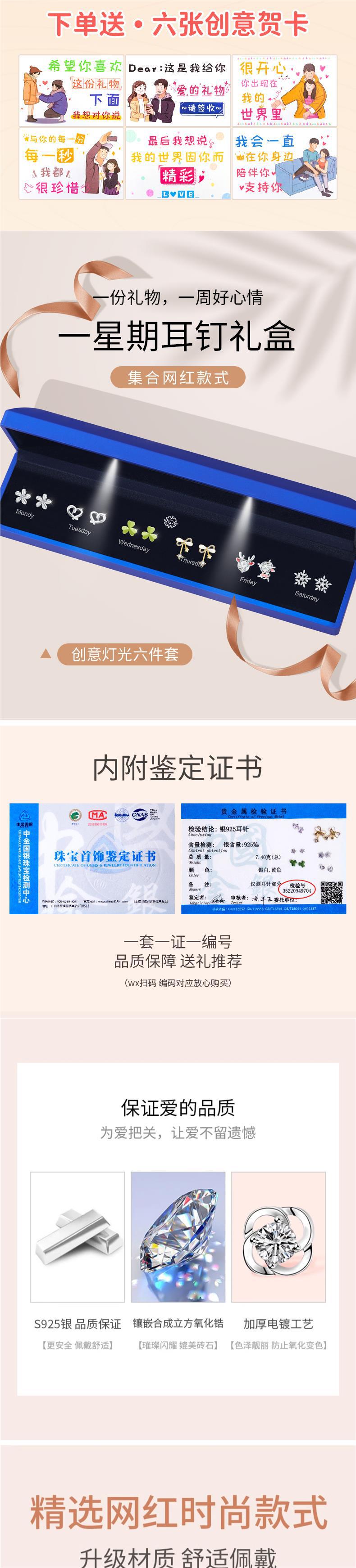 • [점장 점장] 999 실버로 업그레이드⭐일주일 귀걸이 B [라이트 선물 상자] 인증서 포함