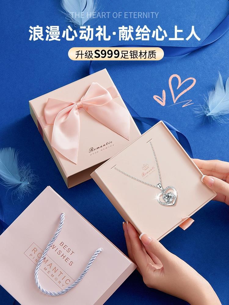 • [이터널 하트 목걸이] 핑크 리본 선물 상자 + 선물 가방 + S999 순은 인증서
