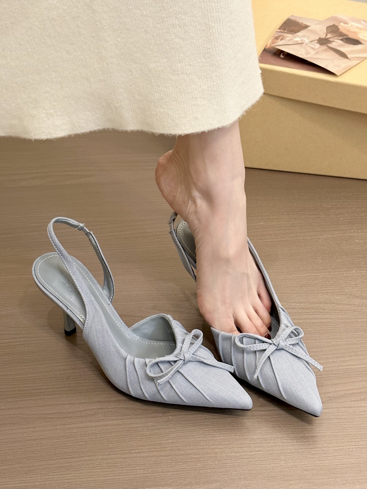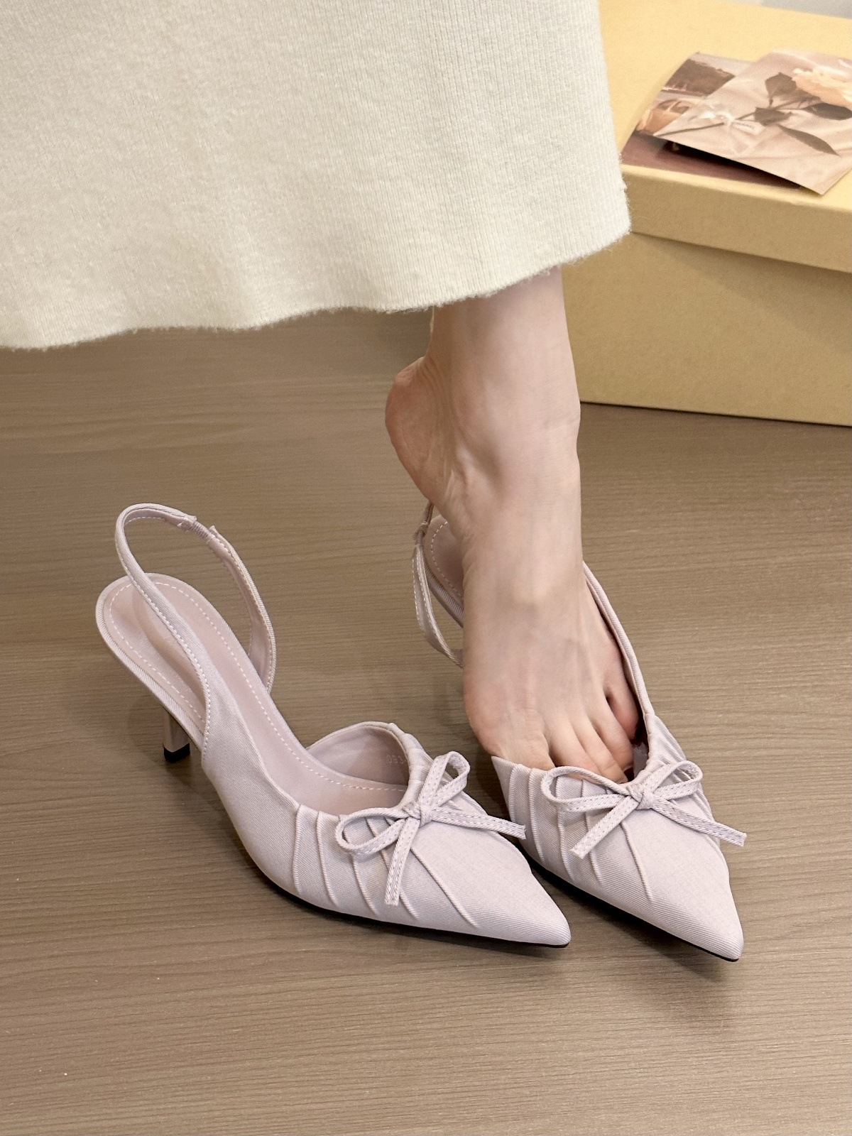 퍼플 미스트 라일락! 2025년 봄 여성용 우아한 뾰족한 주름 장식 발가락 뒤꿈치 샌들, 부드러운 하이힐스토어 가기
