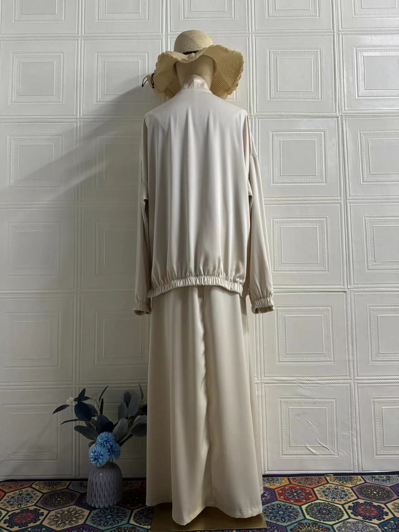 2025 유럽과 미국 여성의 국경 아마존 새로운 단색 지적 캐주얼 느슨한 지퍼 긴 소매 원피스 세트