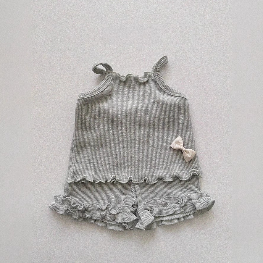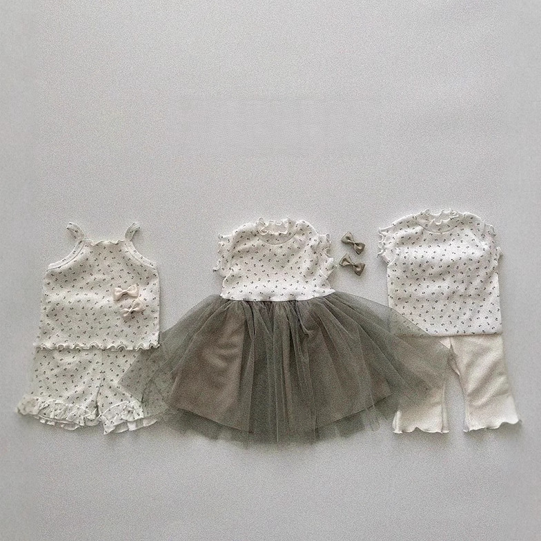 Ins 한국식 여름 체리 핏 스트립 아가릭 조끼 최고 반바지 세트 고 탄성 상쾌한 슬링 세트