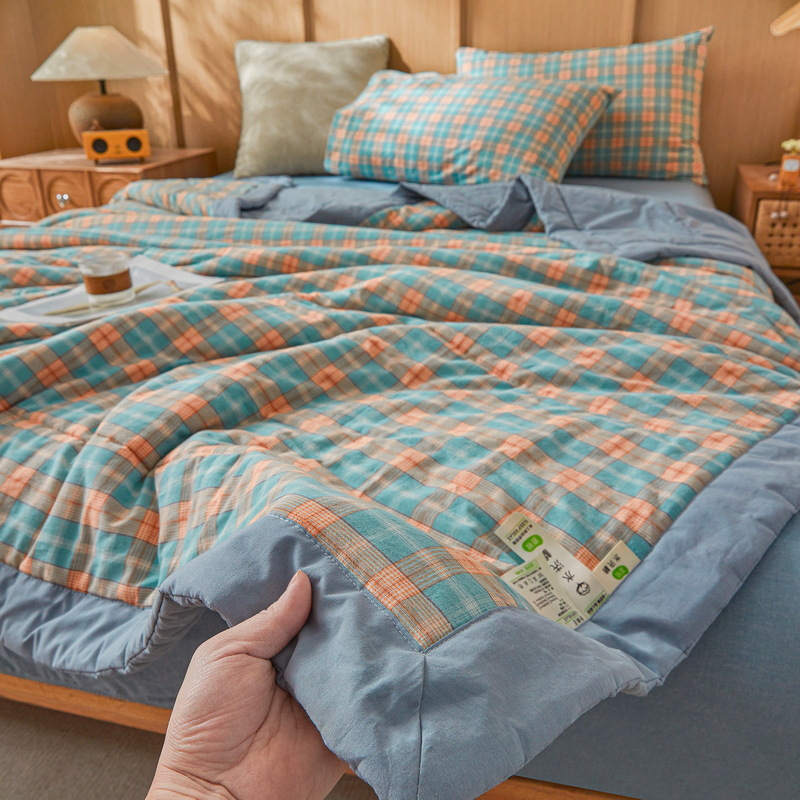 신장 면 순면 여름 시원한 이불 100 순수 면 기계 세탁기 세척 가능한 에어컨 이불 봄과 가을 싱글 여름 얇은 이불