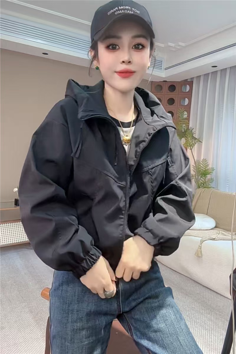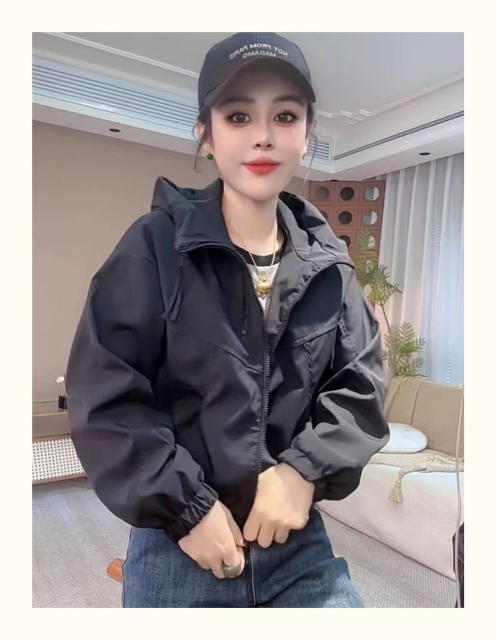 후드 자켓 여자 2025 봄 새로운 한국 짧은 재킷 느슨한 캐주얼 슬림 핏 탑스토어 가기