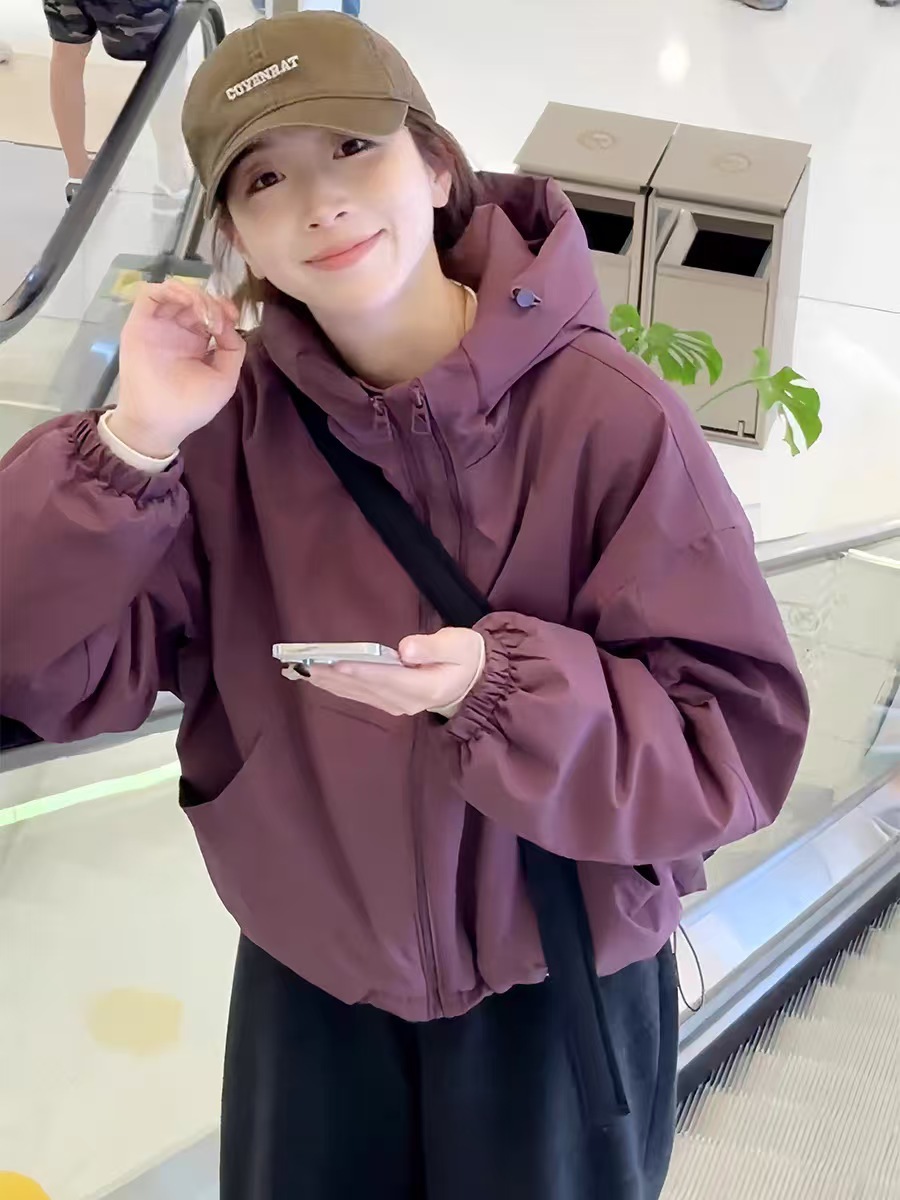 후드 자켓 여자 2025 봄 새로운 한국 짧은 재킷 느슨한 캐주얼 슬림 핏 탑