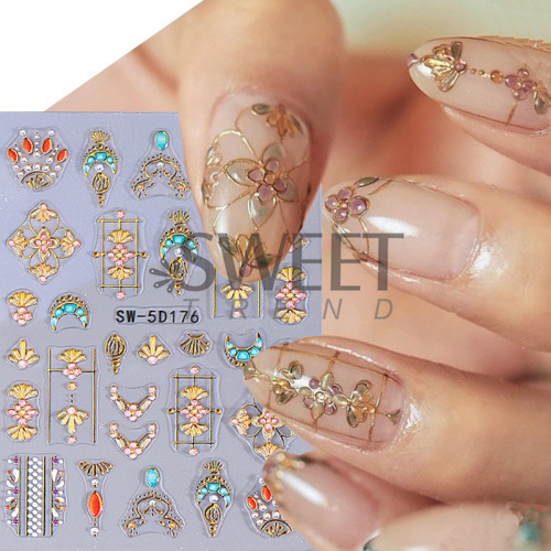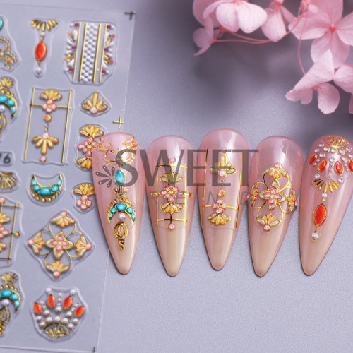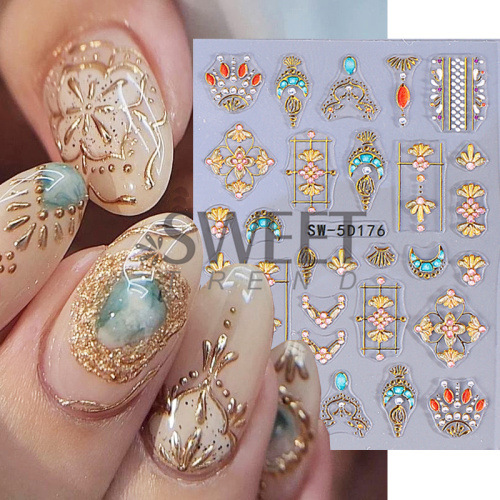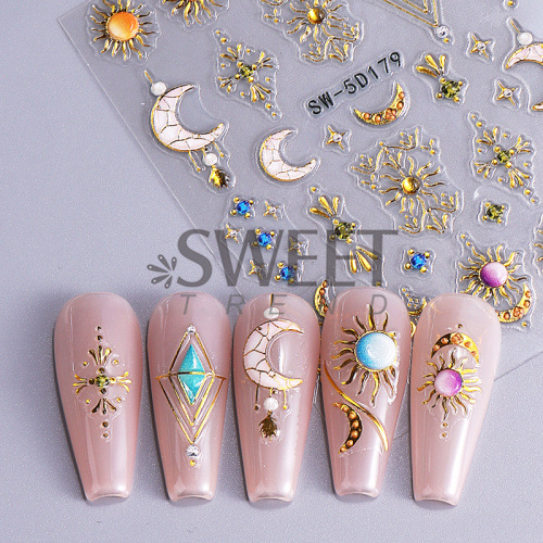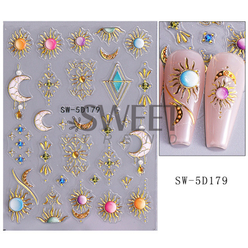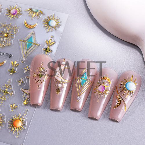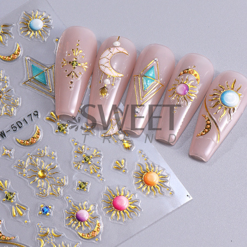 국경 양각 네일 아트 스티커에 바람 복고풍 토템 별 달 태양 접착 네일 데칼 도매