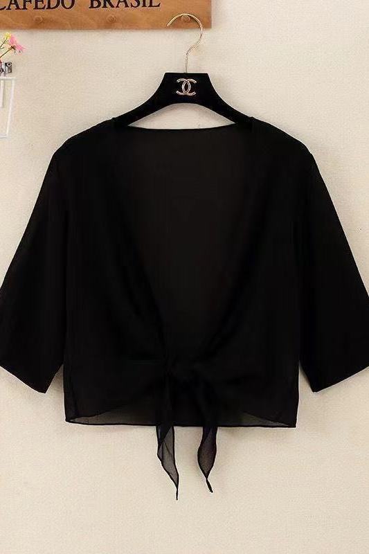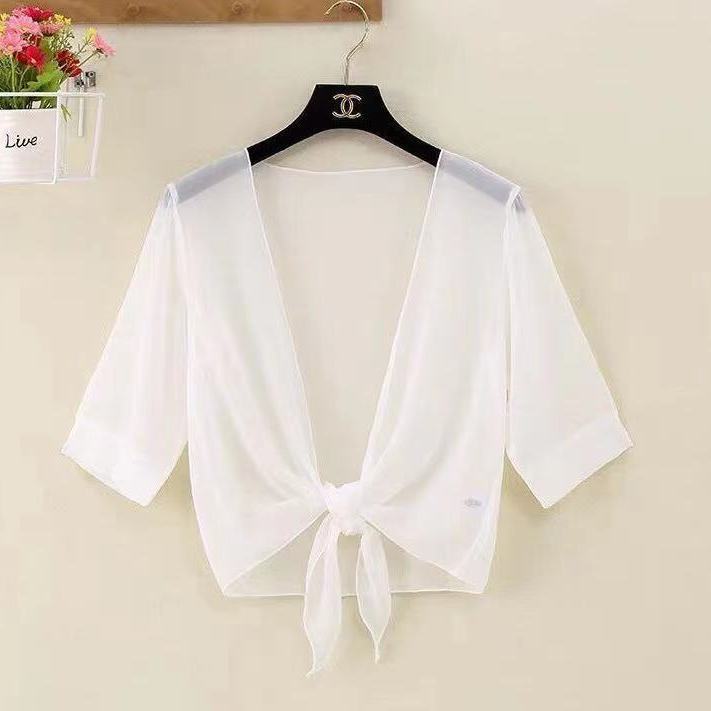 2025 메쉬 올 매치 아우터 카디건 자켓 여름 슬링 스커트 짧은 작은 목도리 얇은 태양 보호 의류