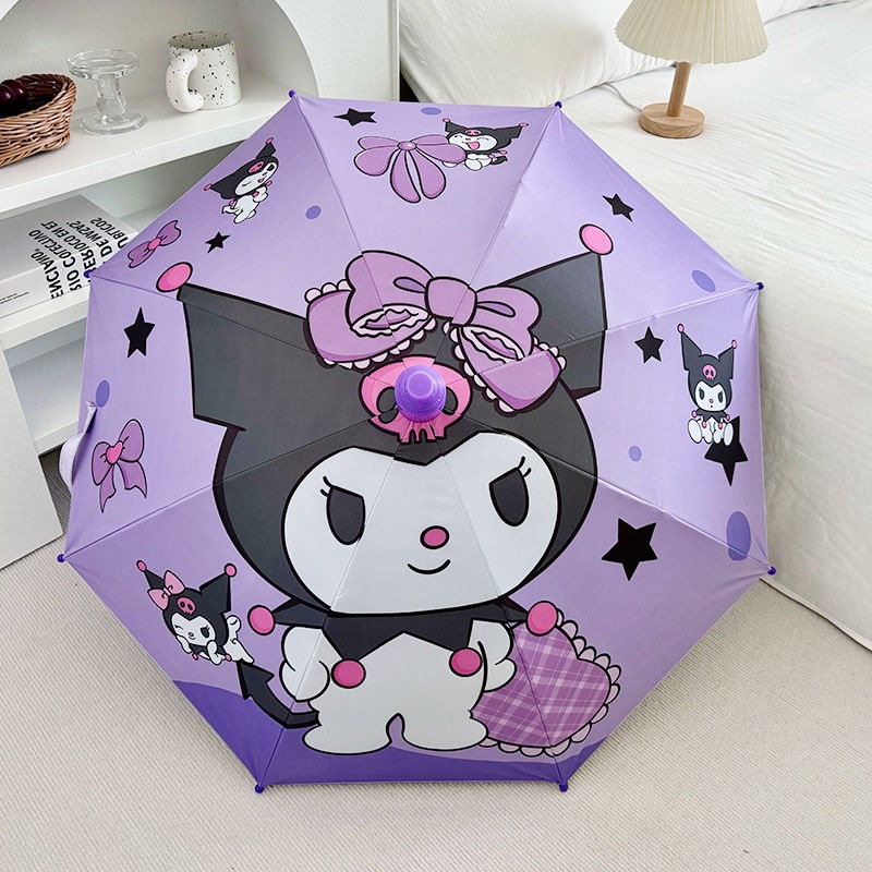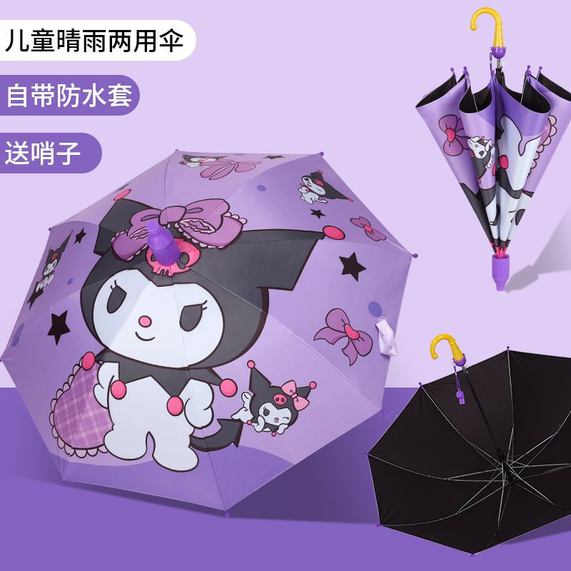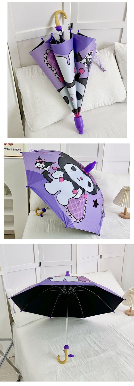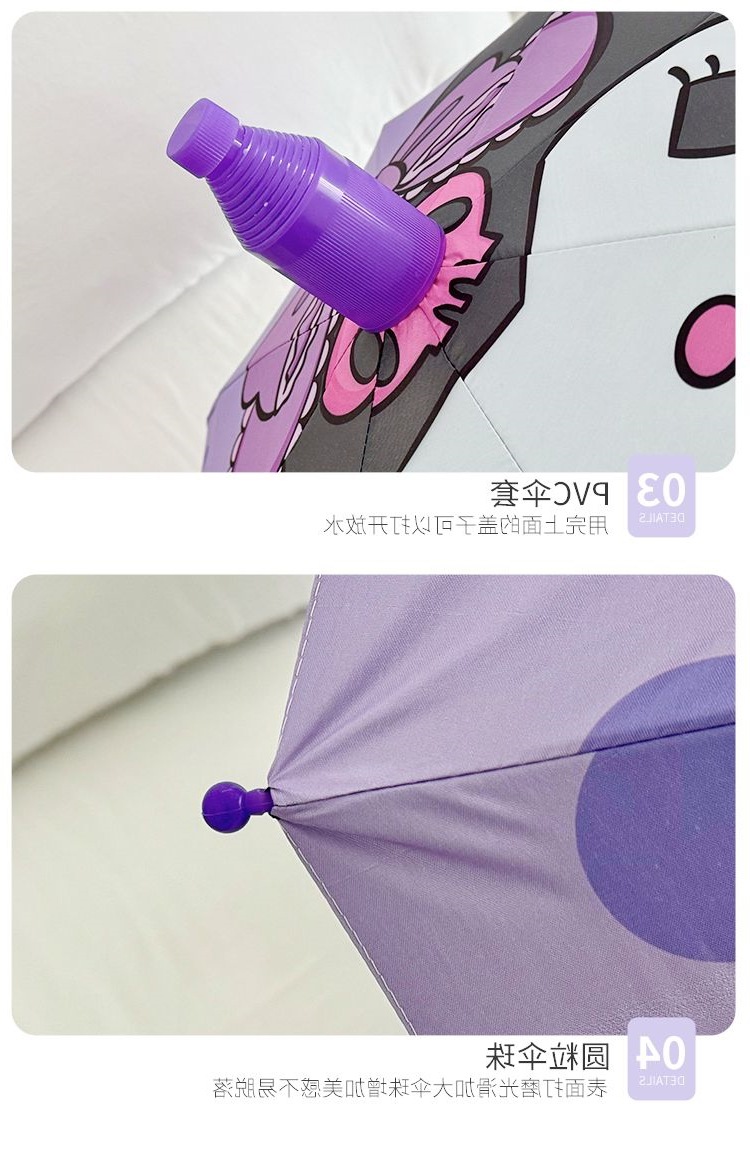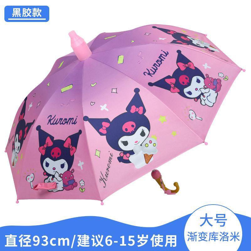 Kuromi 어린이 자동 비닐 자외선 방지 경량 태양 우산 방수 커버 남성과 여성 학생 공주 긴 손잡이 우산