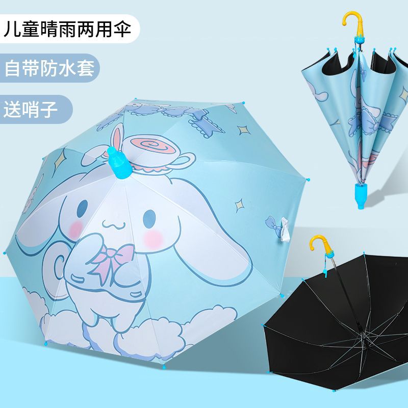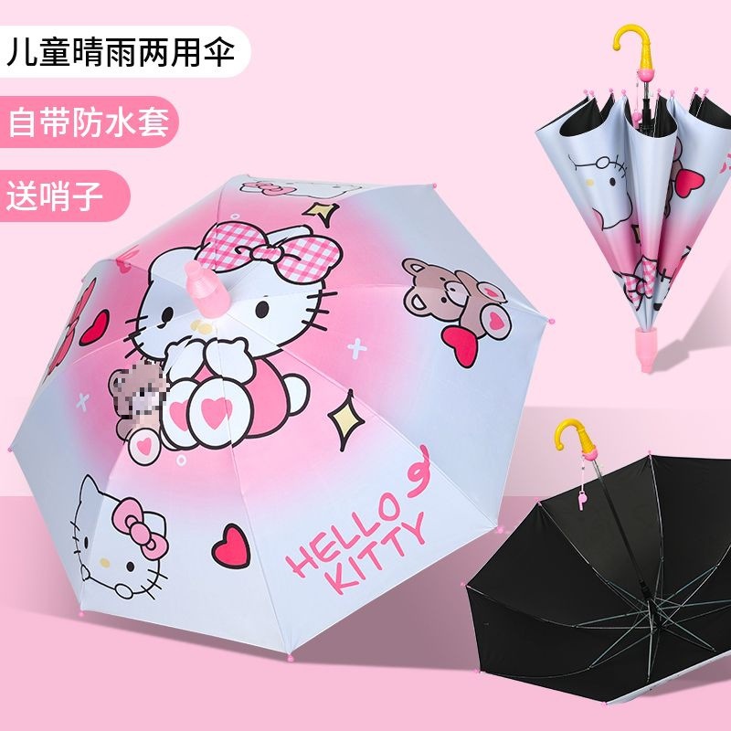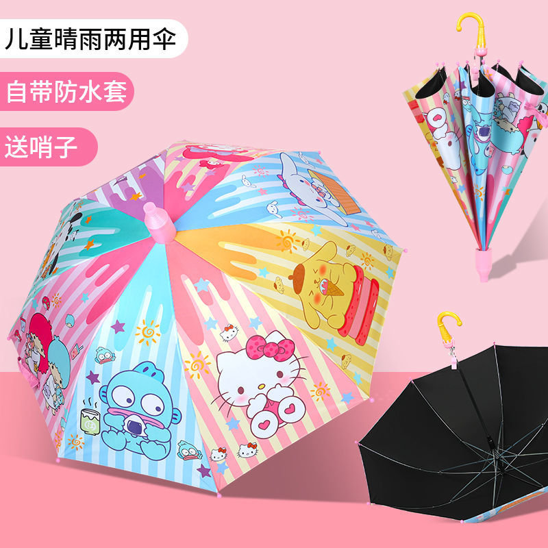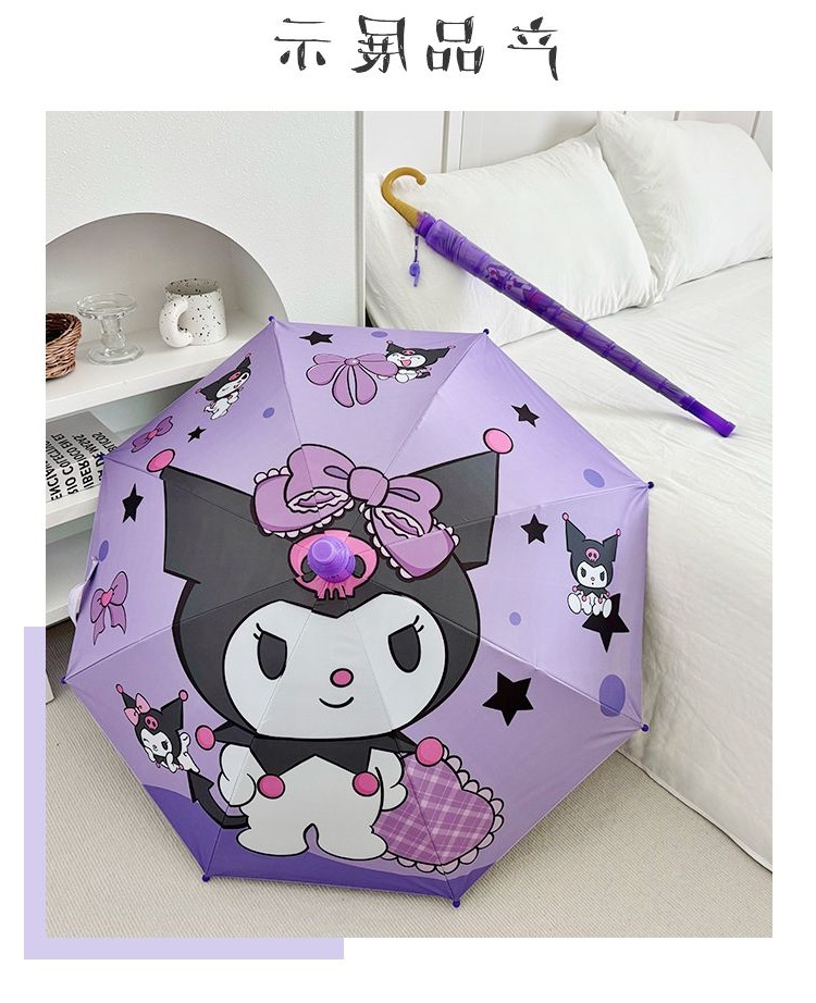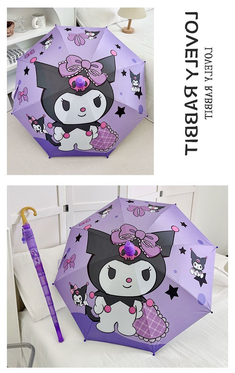Kuromi 어린이 자동 비닐 자외선 방지 경량 태양 우산 방수 커버 남성과 여성 학생 공주 긴 손잡이 우산