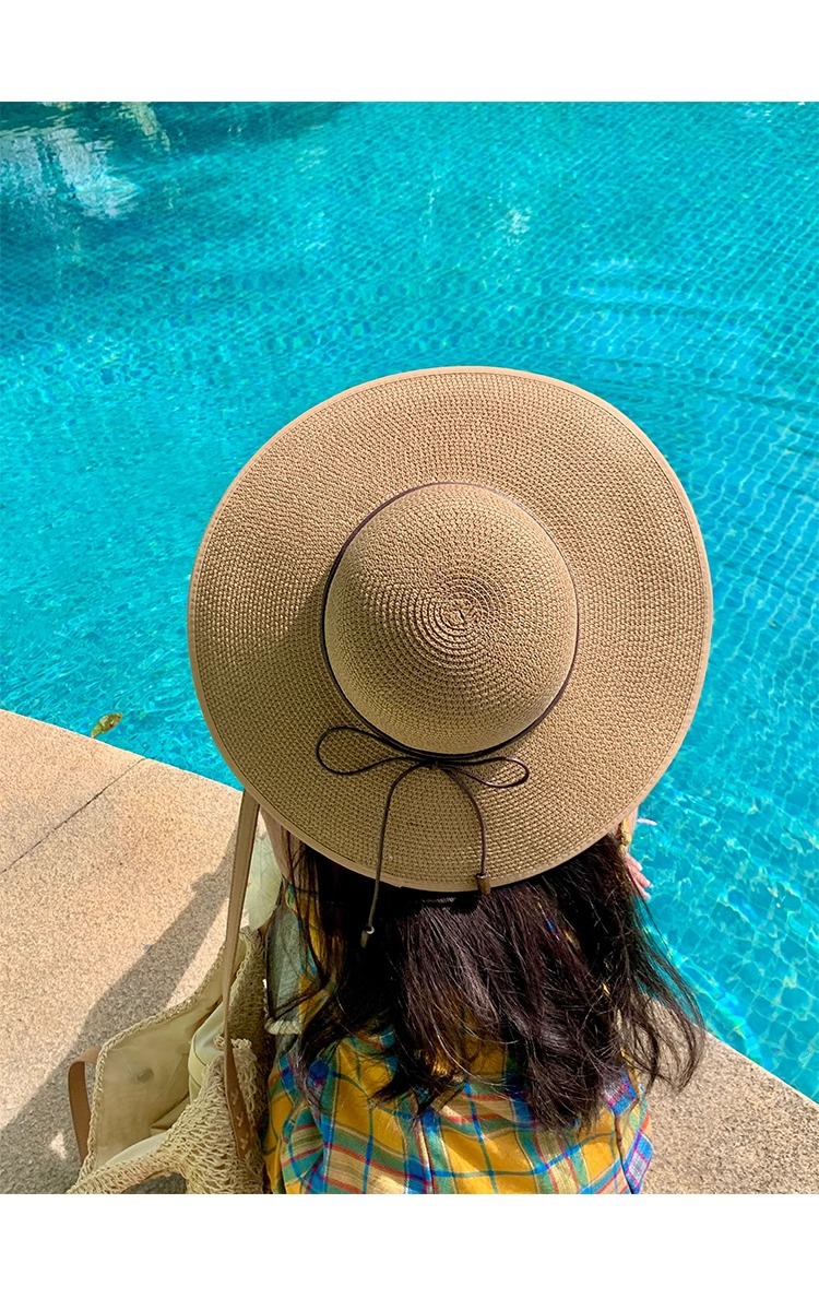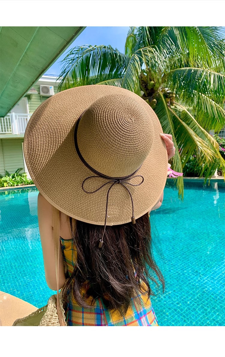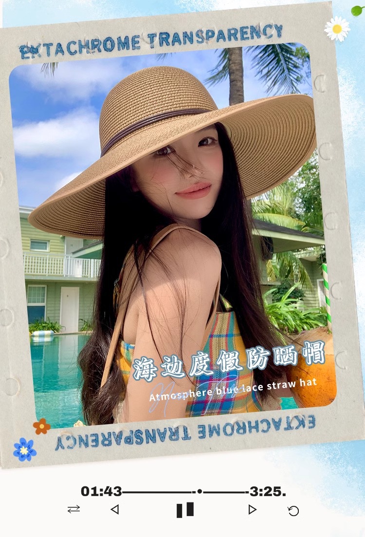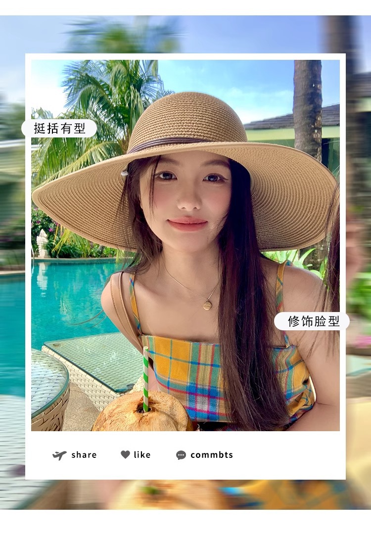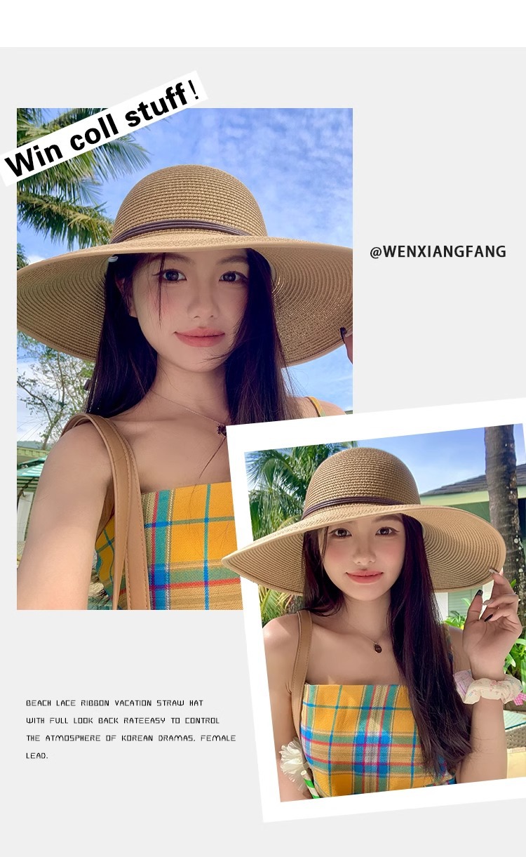 큰 브림 그늘 밀짚 모자 여성의 2025 년 봄 새 해변 태양 모자 접이식 캐주얼 모자