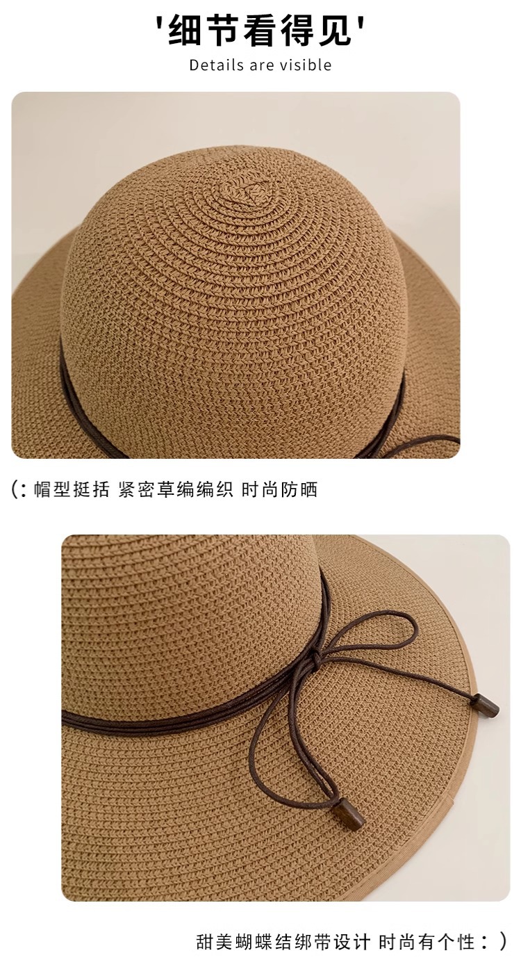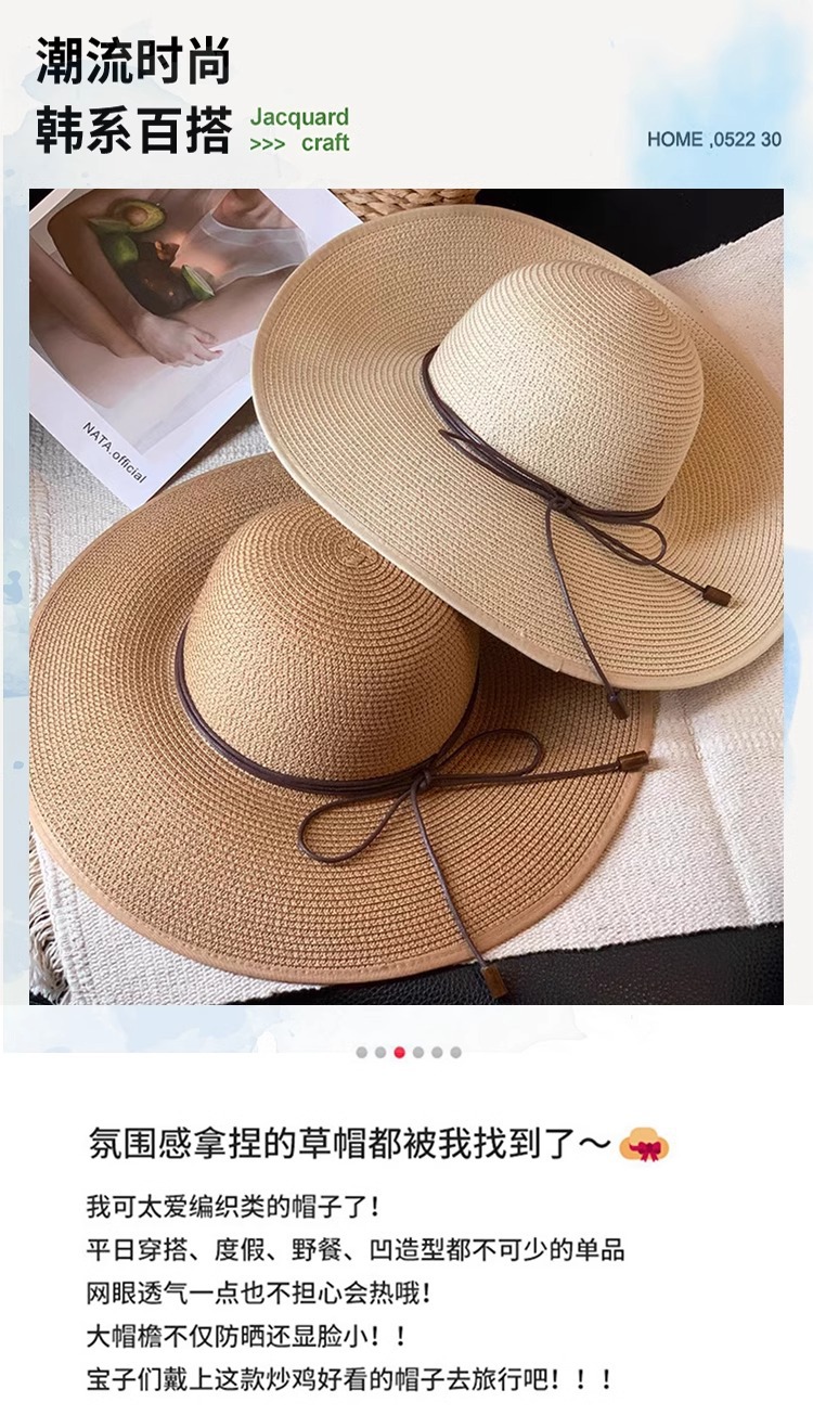 큰 브림 그늘 밀짚 모자 여성의 2025 년 봄 새 해변 태양 모자 접이식 캐주얼 모자스토어 가기