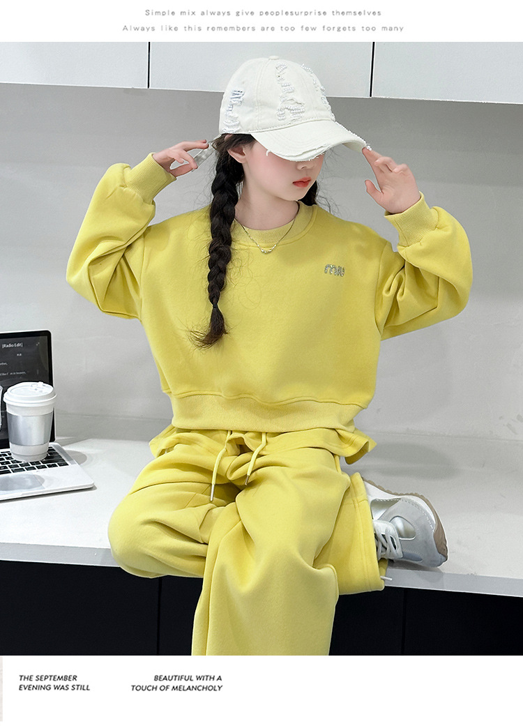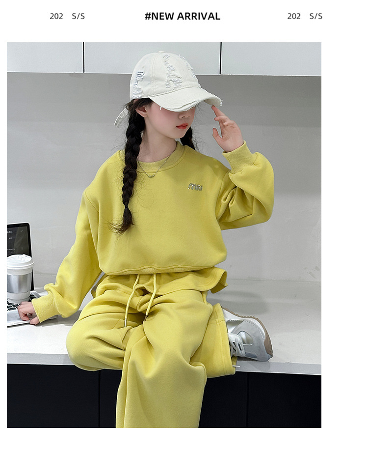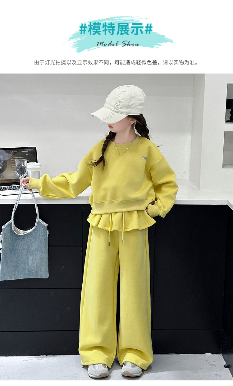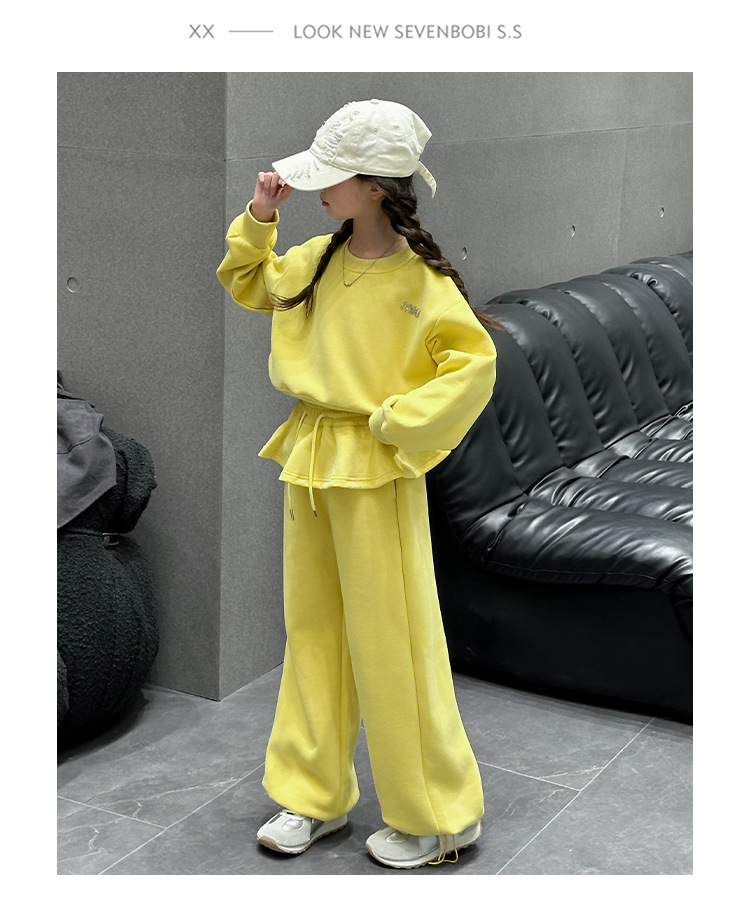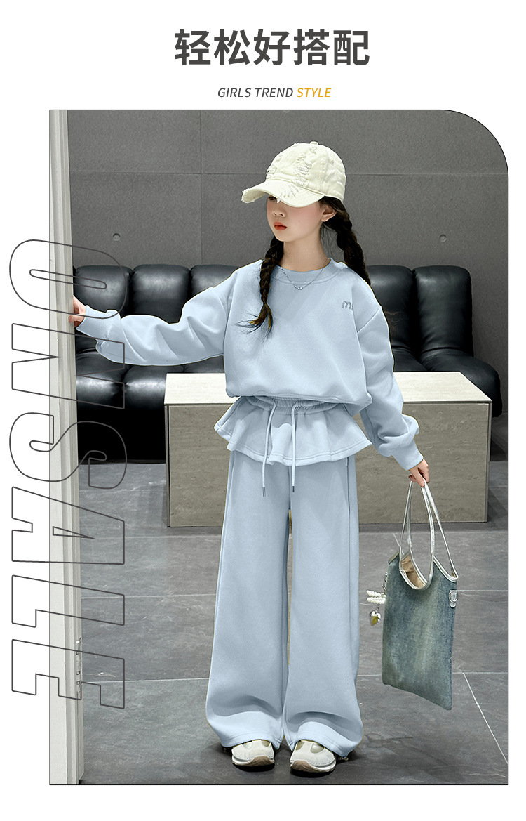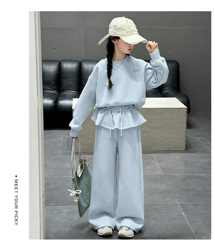 소녀의 봄과 가을 캐주얼 땀 세트 2025 봄 큰 어린이 스타일 핫 힌트 러플 스커트 투피스 세트스토어 가기