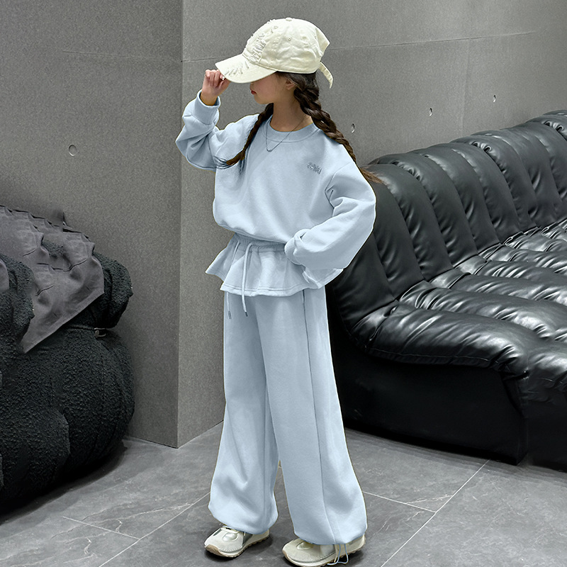 소녀의 봄과 가을 캐주얼 땀 세트 2025 봄 큰 어린이 스타일 핫 힌트 러플 스커트 투피스 세트