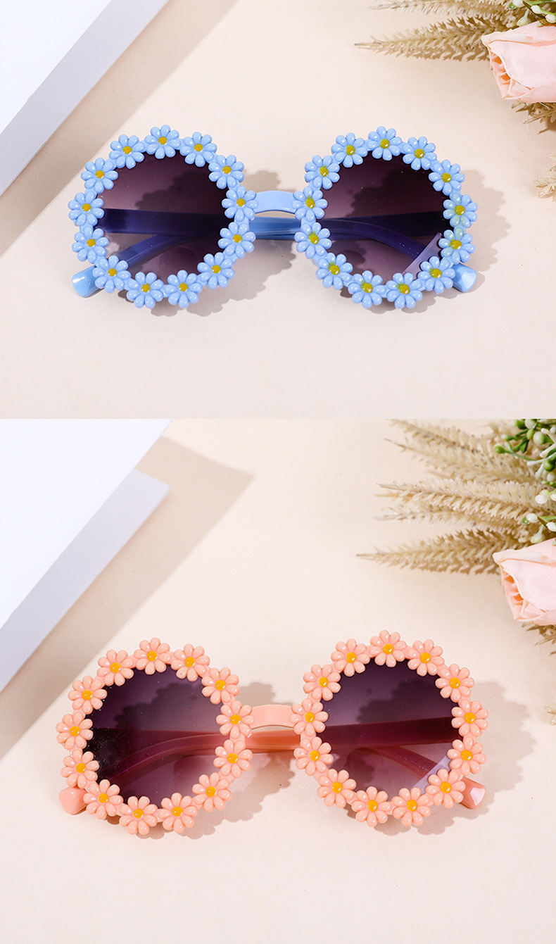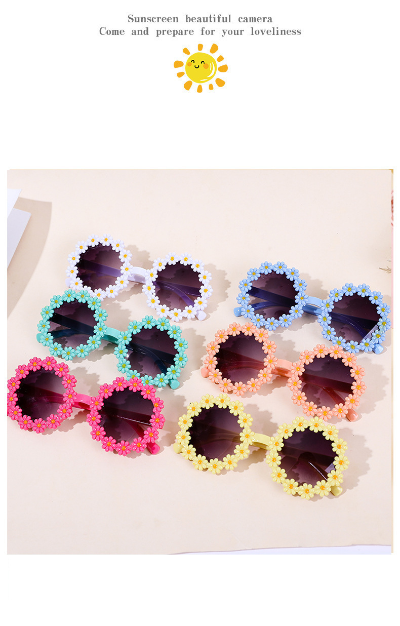 소녀 해바라기 라운드 꽃 귀여운 패션 양산 안경 어린이 데이지 선글라스 어린이 모양 크로스 테두리 도매스토어 가기