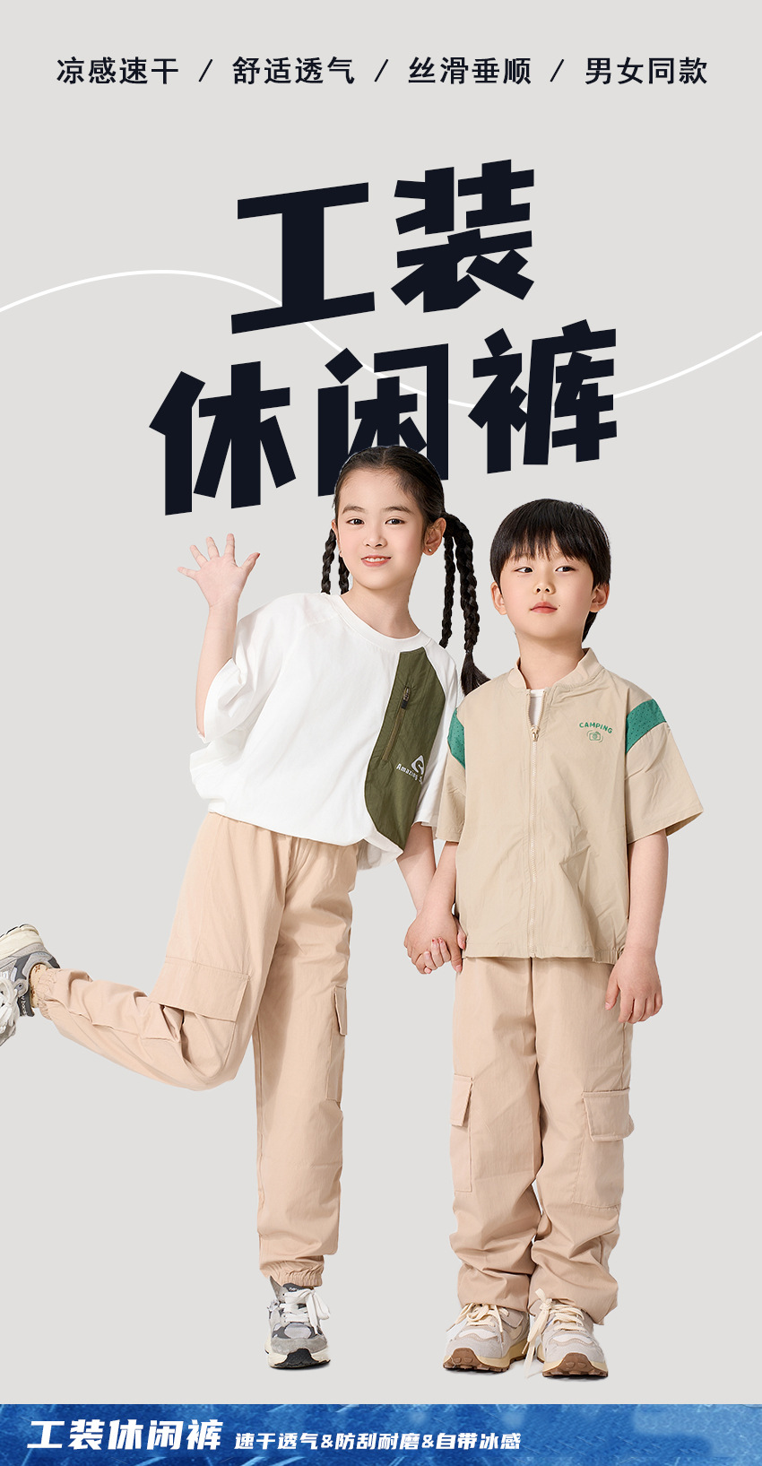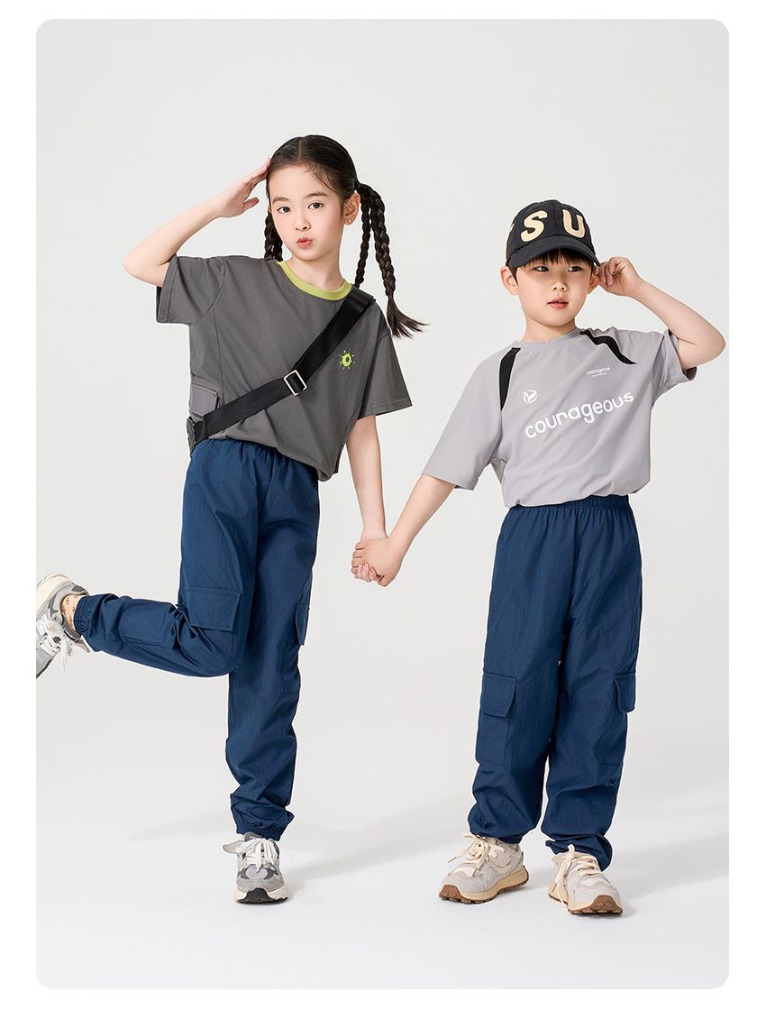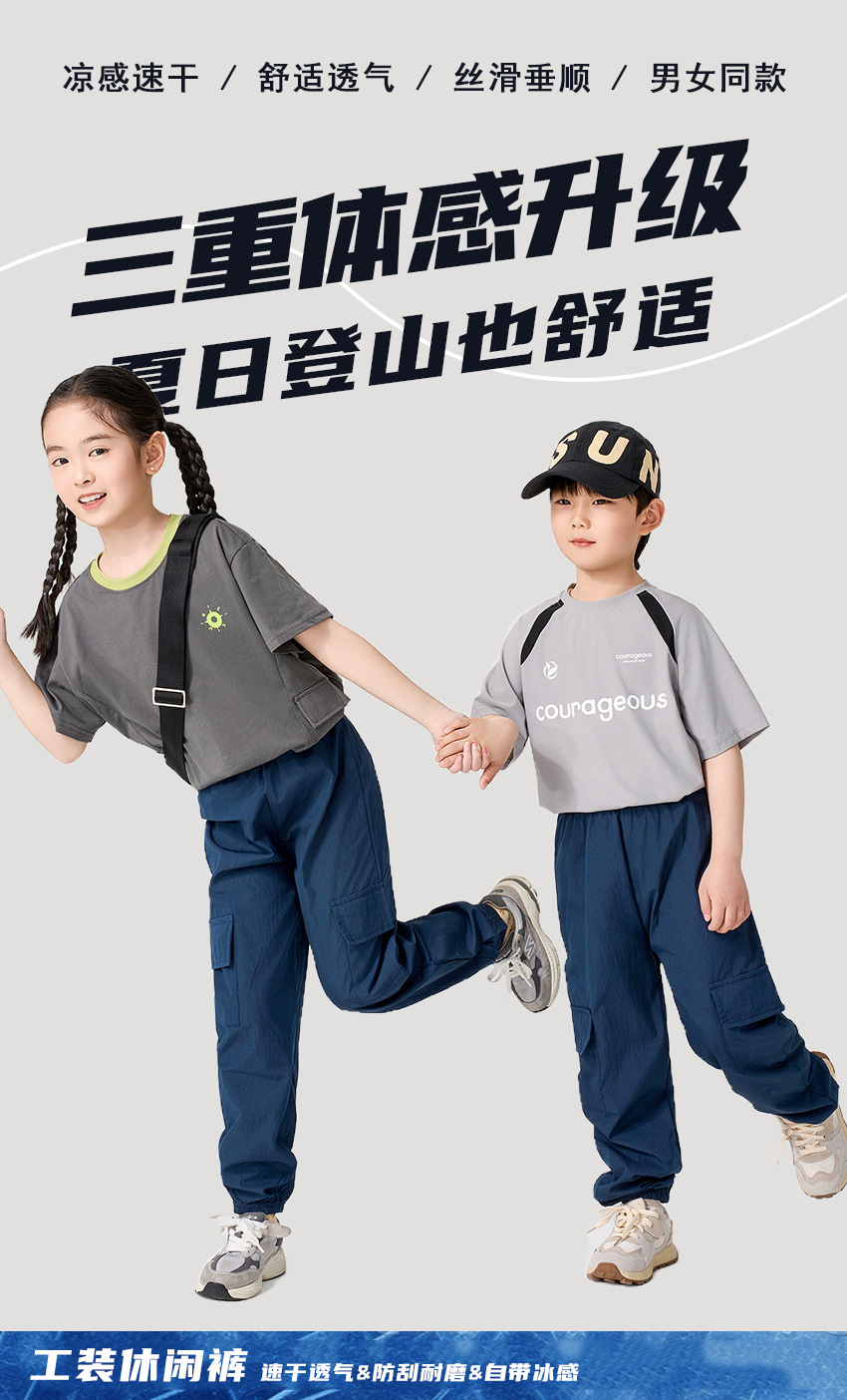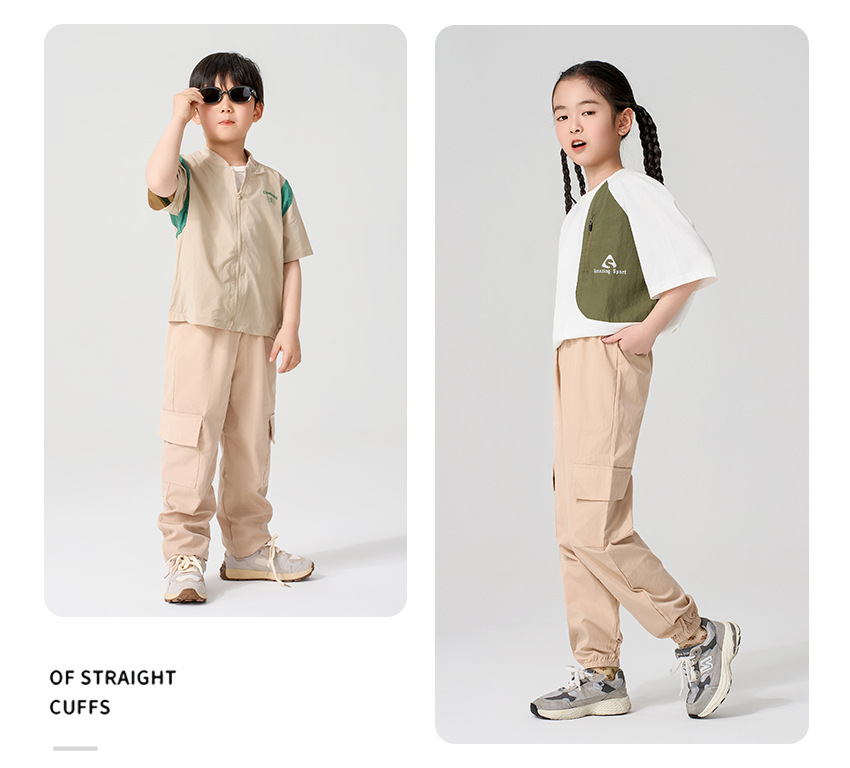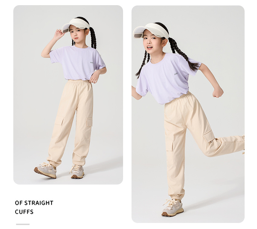 어린이 캐주얼 바지 여름 2025 새로운 스타일 작업복 소녀 소년 중 큰 어린이 아이스 실크 아이스 센스 스포츠 바지 다리 바지