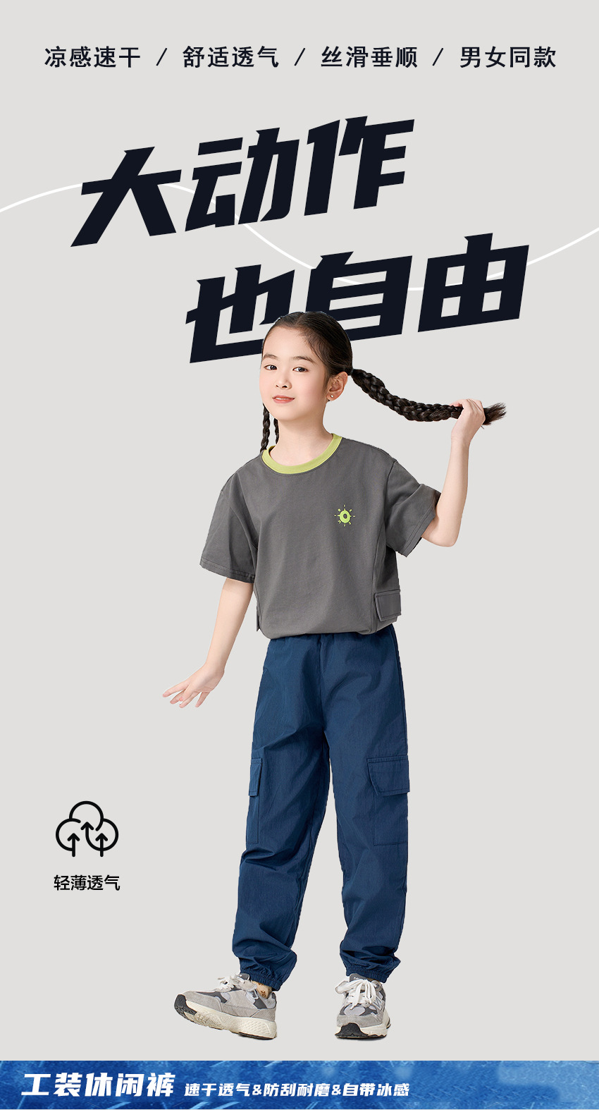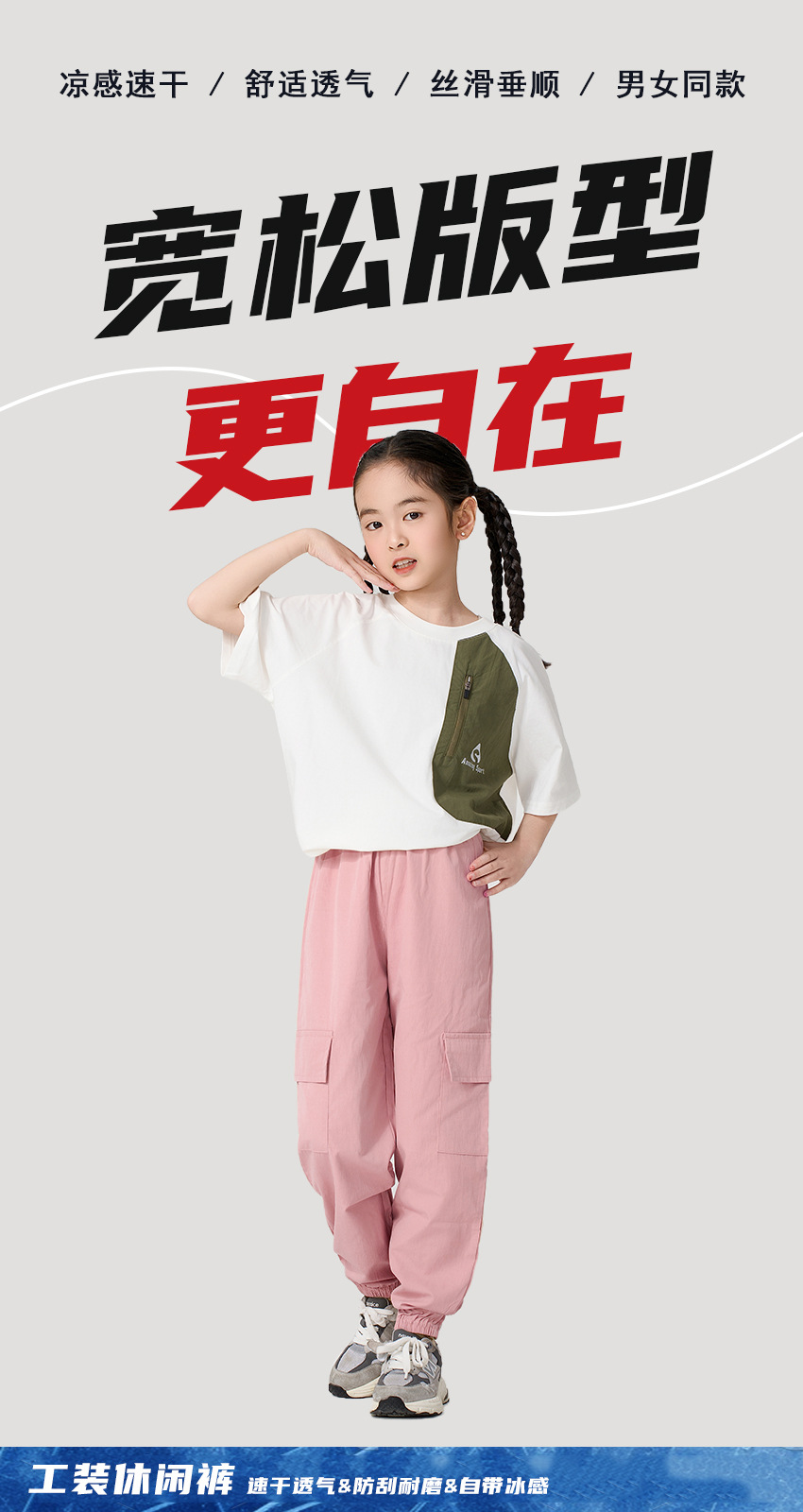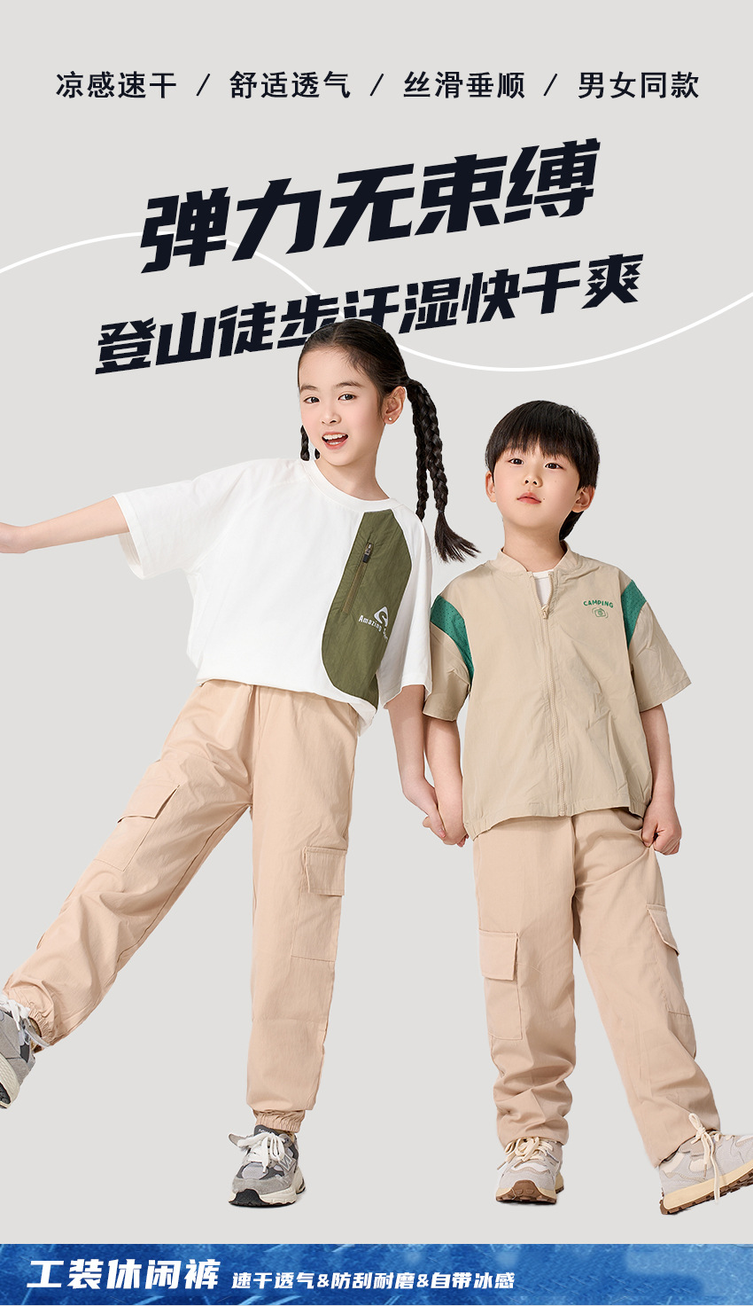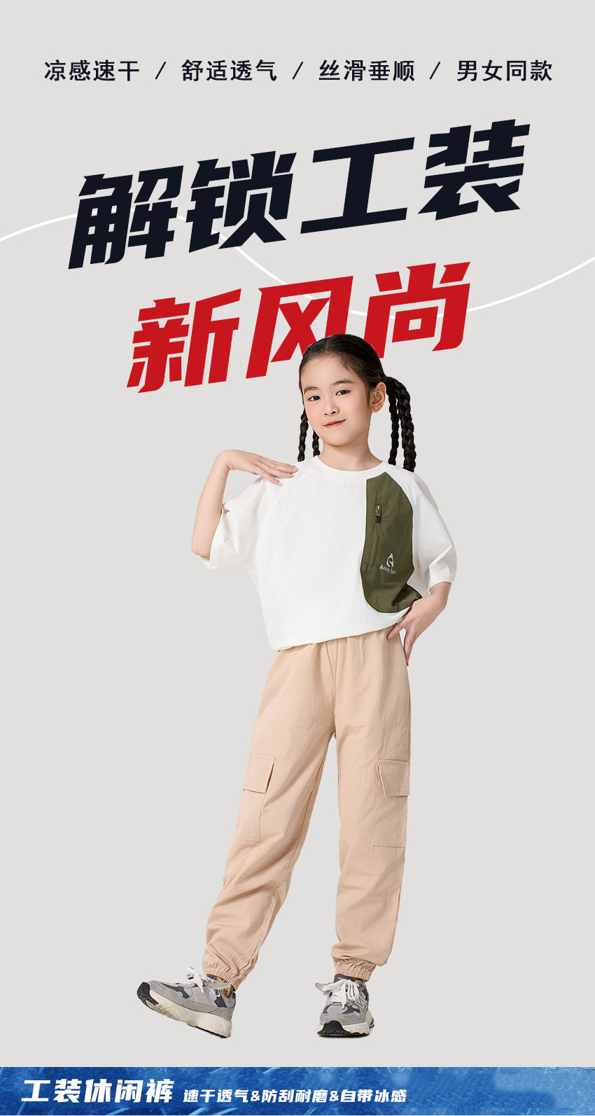 어린이 캐주얼 바지 여름 2025 새로운 스타일 작업복 소녀 소년 중 큰 어린이 아이스 실크 아이스 센스 스포츠 바지 다리 바지