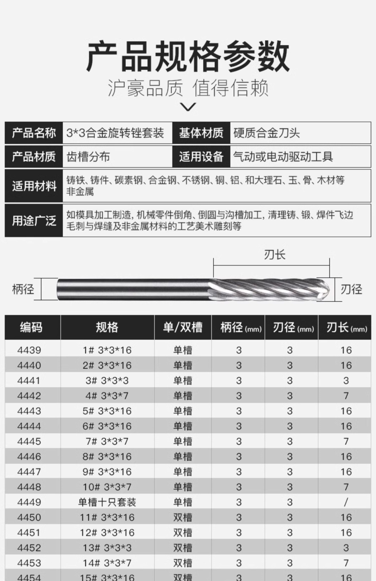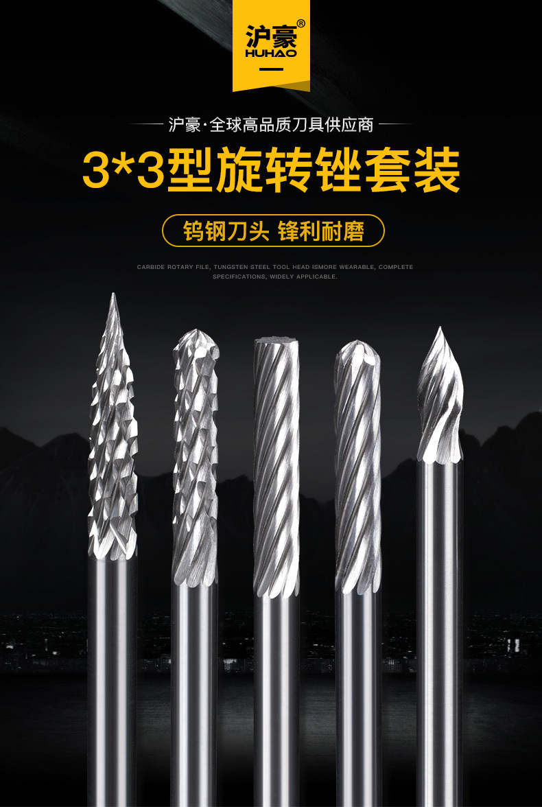 Huhao 카바이드 로터리 파일 텅스텐 강철 연삭 헤드 목공 금속 연삭 드릴 나무 조각 스테인레스 스틸 파일 3mm