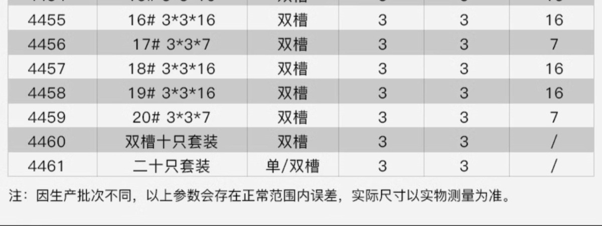 • 3*3 단일 및 이중 슬롯 20개 세트(동일 사양에 한함)