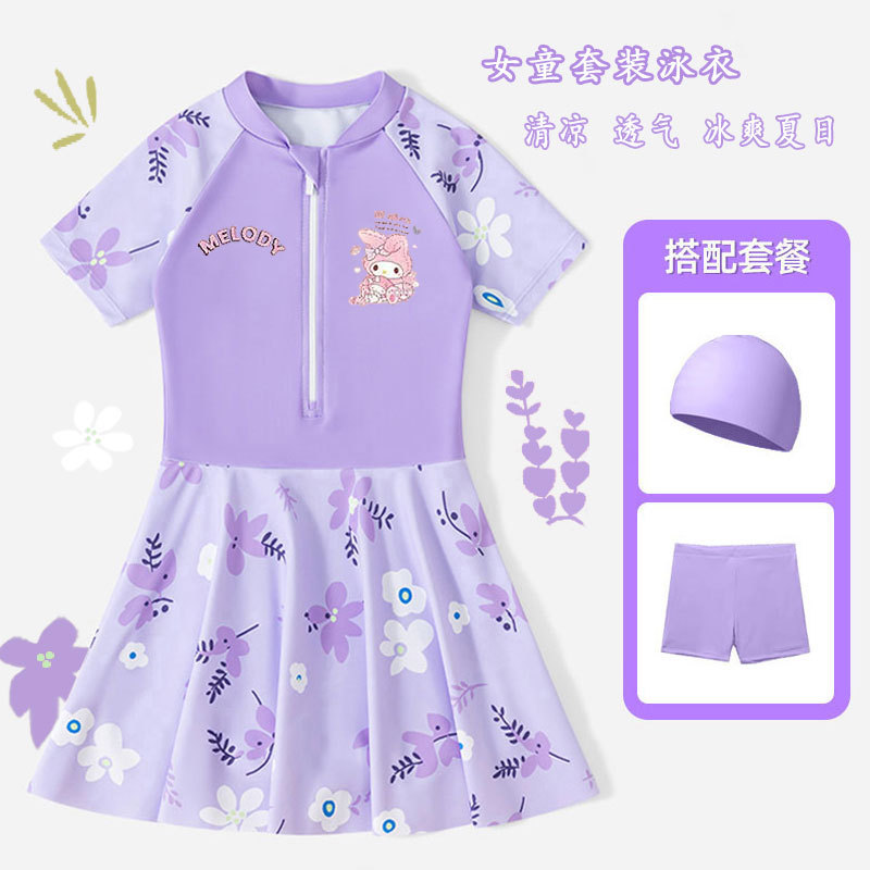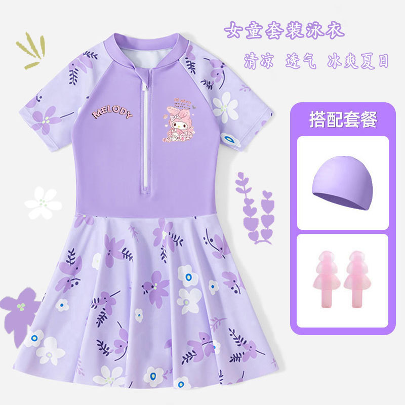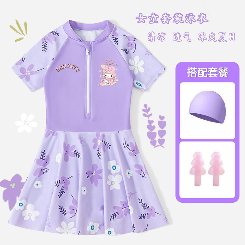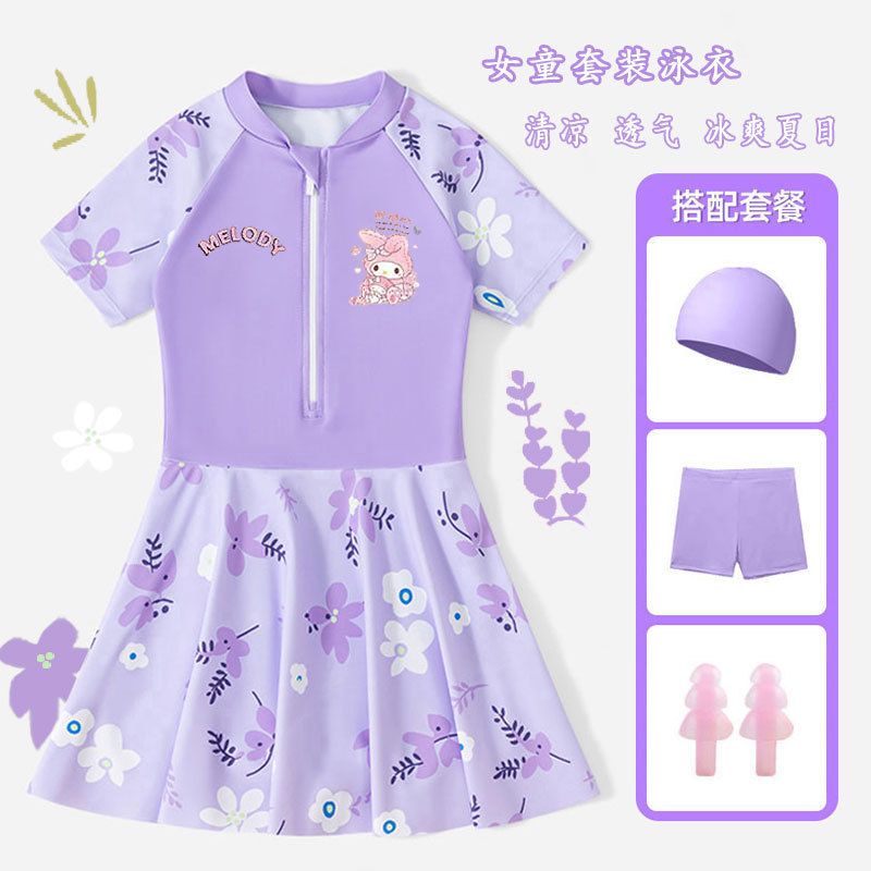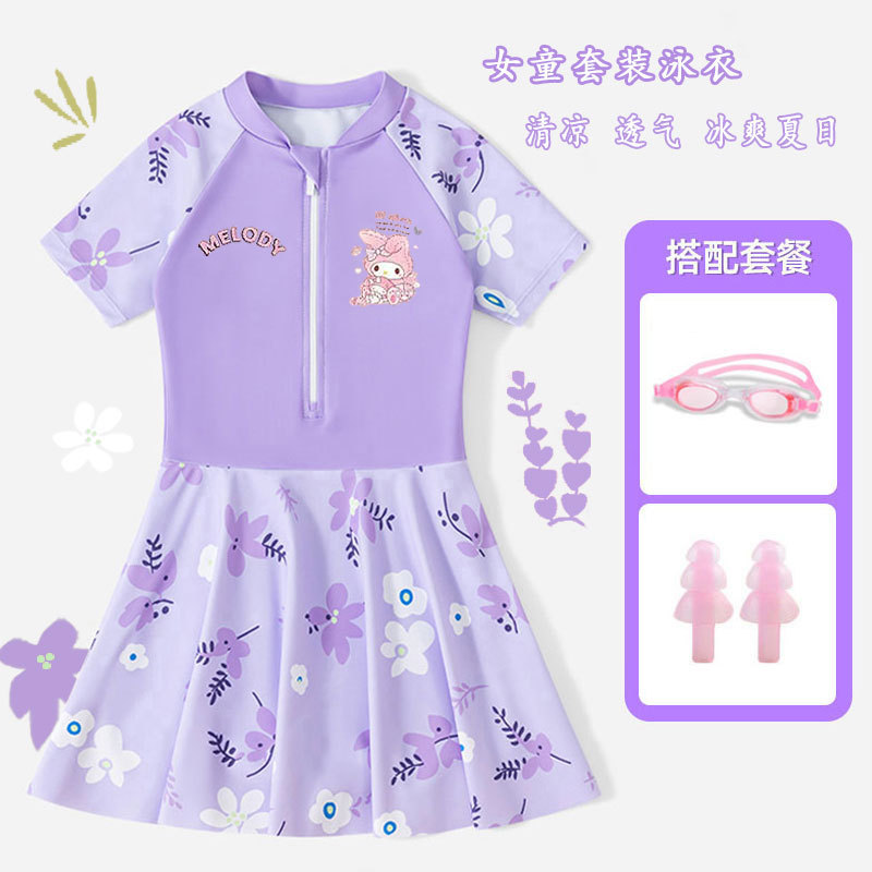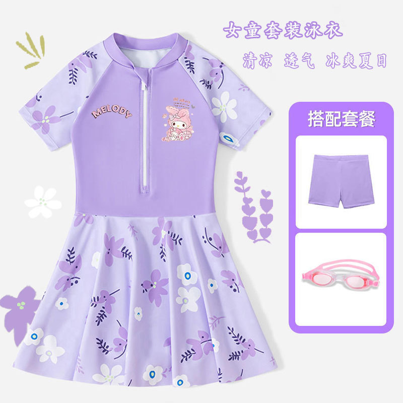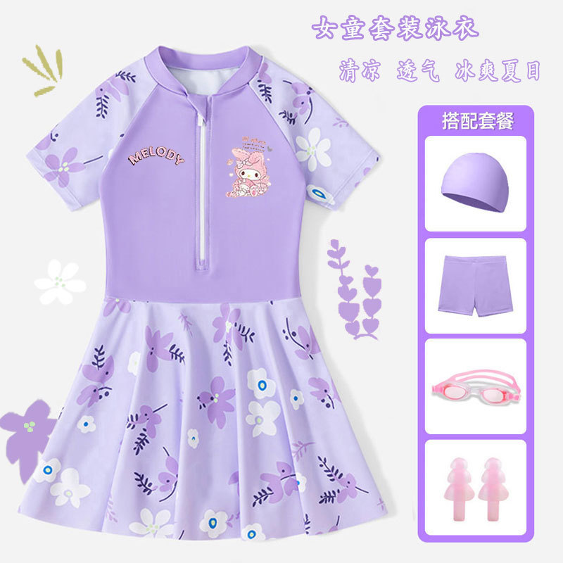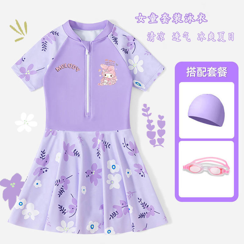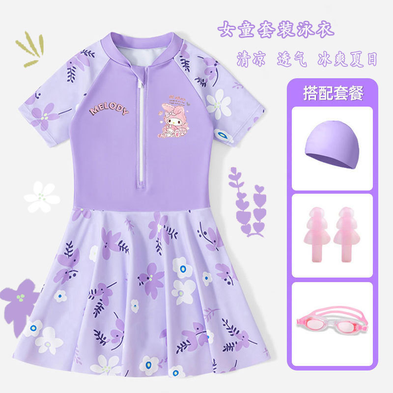 • 보라색 스커트 + 수영모 + 수영 고글 [무료 안전바지]