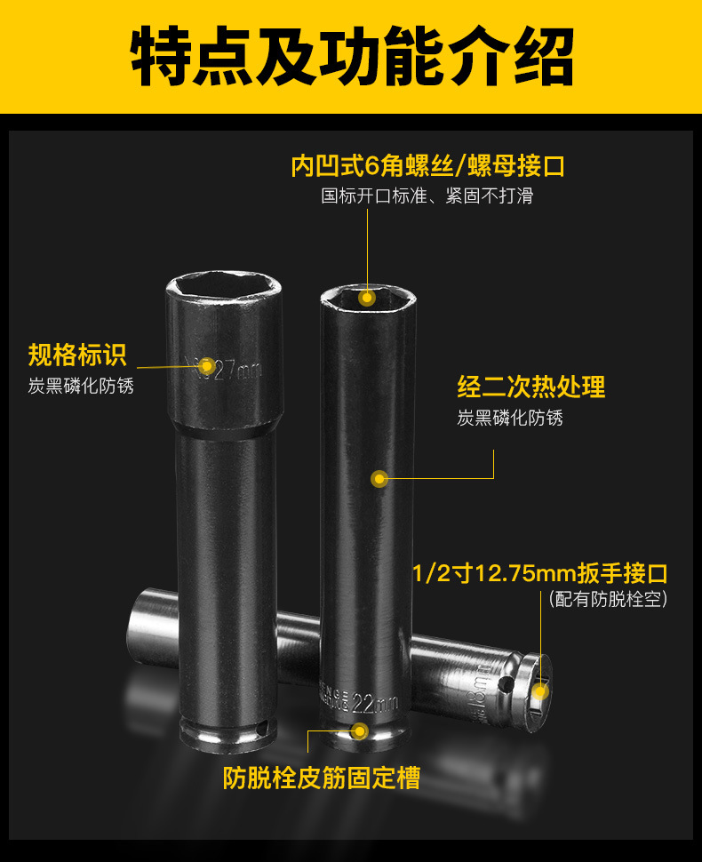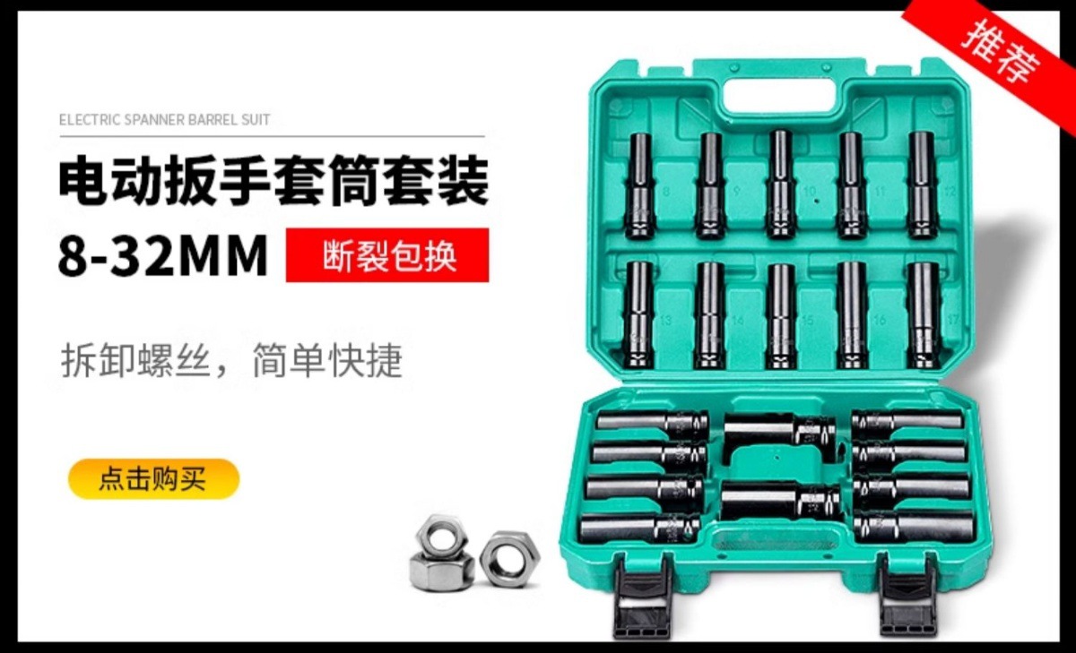Huhao 긴 소켓 세트 전기 렌치 육각형 소켓 헤드 대형, 중형 및 소형 비행 도구의 전체 세트 심화스토어 가기