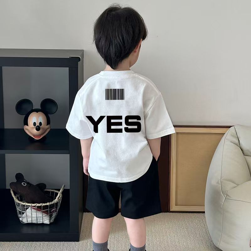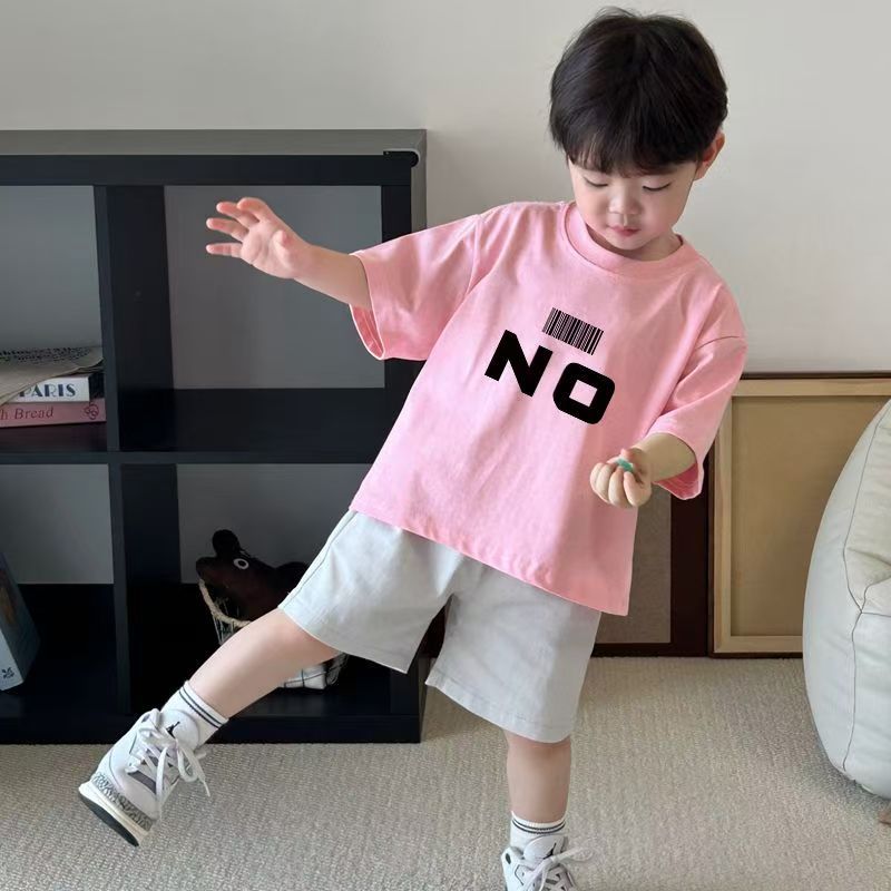 2025 봄과 여름 새로운 소년 면화 아동베이스 셔츠 아기 인쇄 상단 간단한 짧은 소매 라운드 목 풀오버